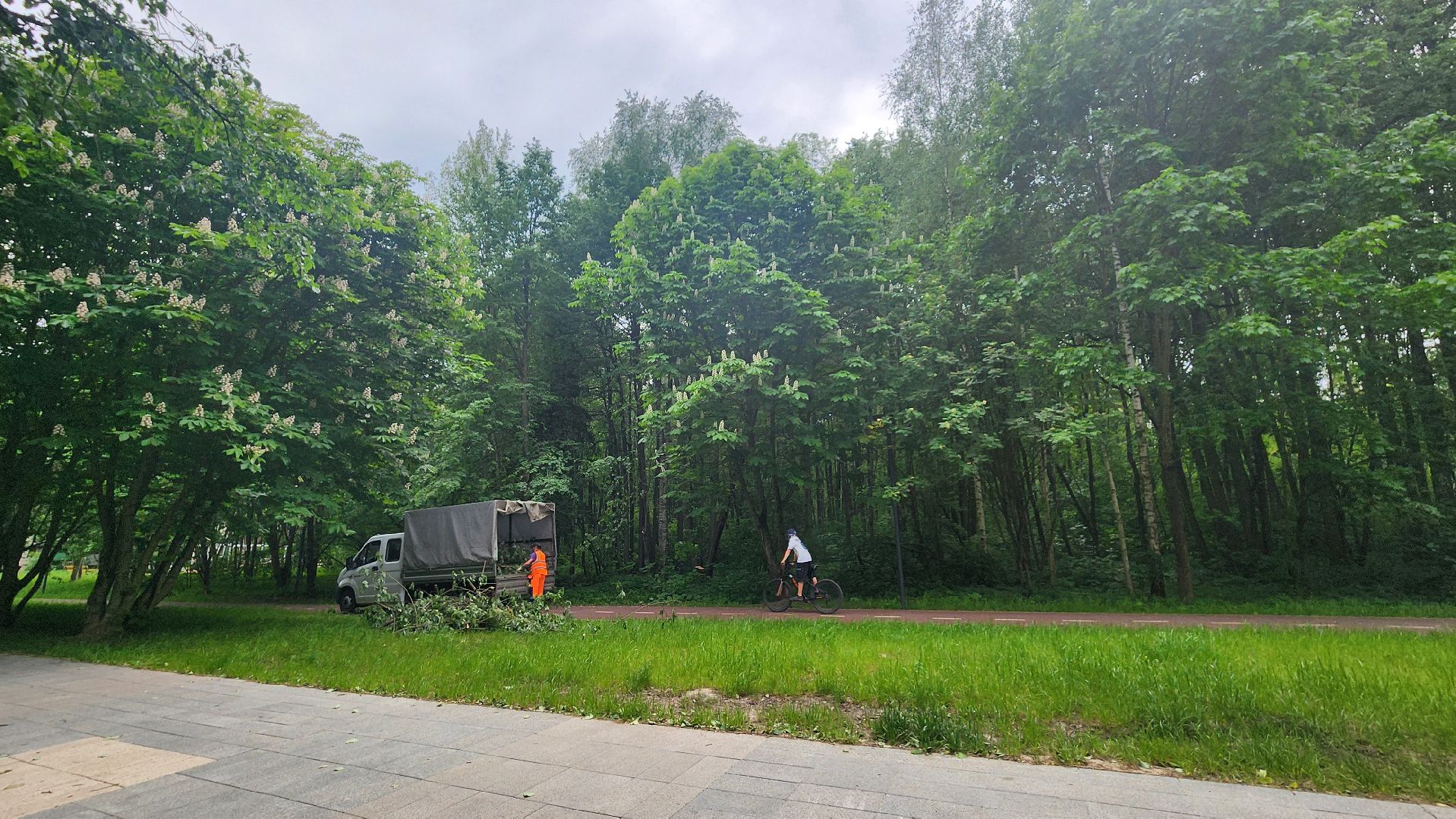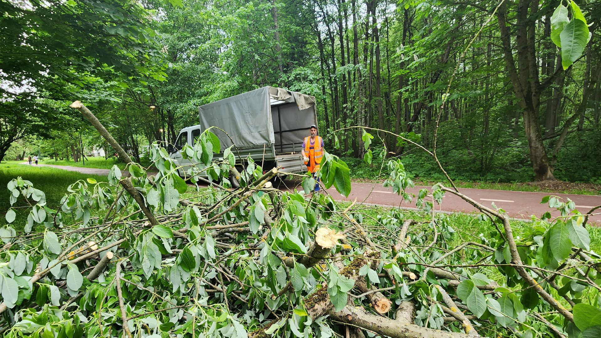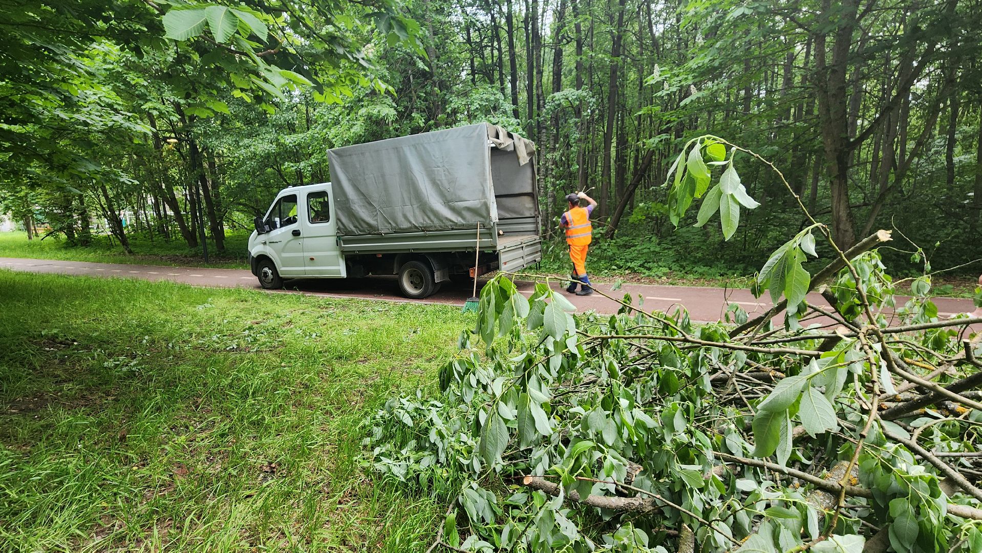 Протвинские коммунальщики оперативно убрали рухнувшее на велосипедную дорожку дерево. Ствол преградил участок пути недалеко от домов 15 и 17 Лесного бульвара. Мастер «Комбината благоустройства», ответственный за этот участок города, сразу вызвал рабочих. Сотрудники организации приехали на «Газели», распилили дерево и крупные ветки бензопилой, погрузили их в кузов и увезли бревна на утилизацию.