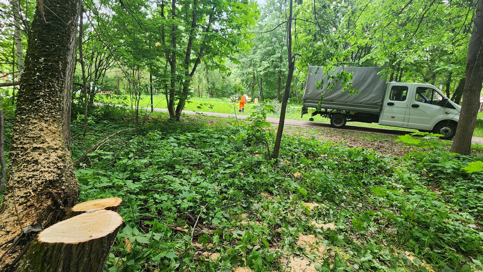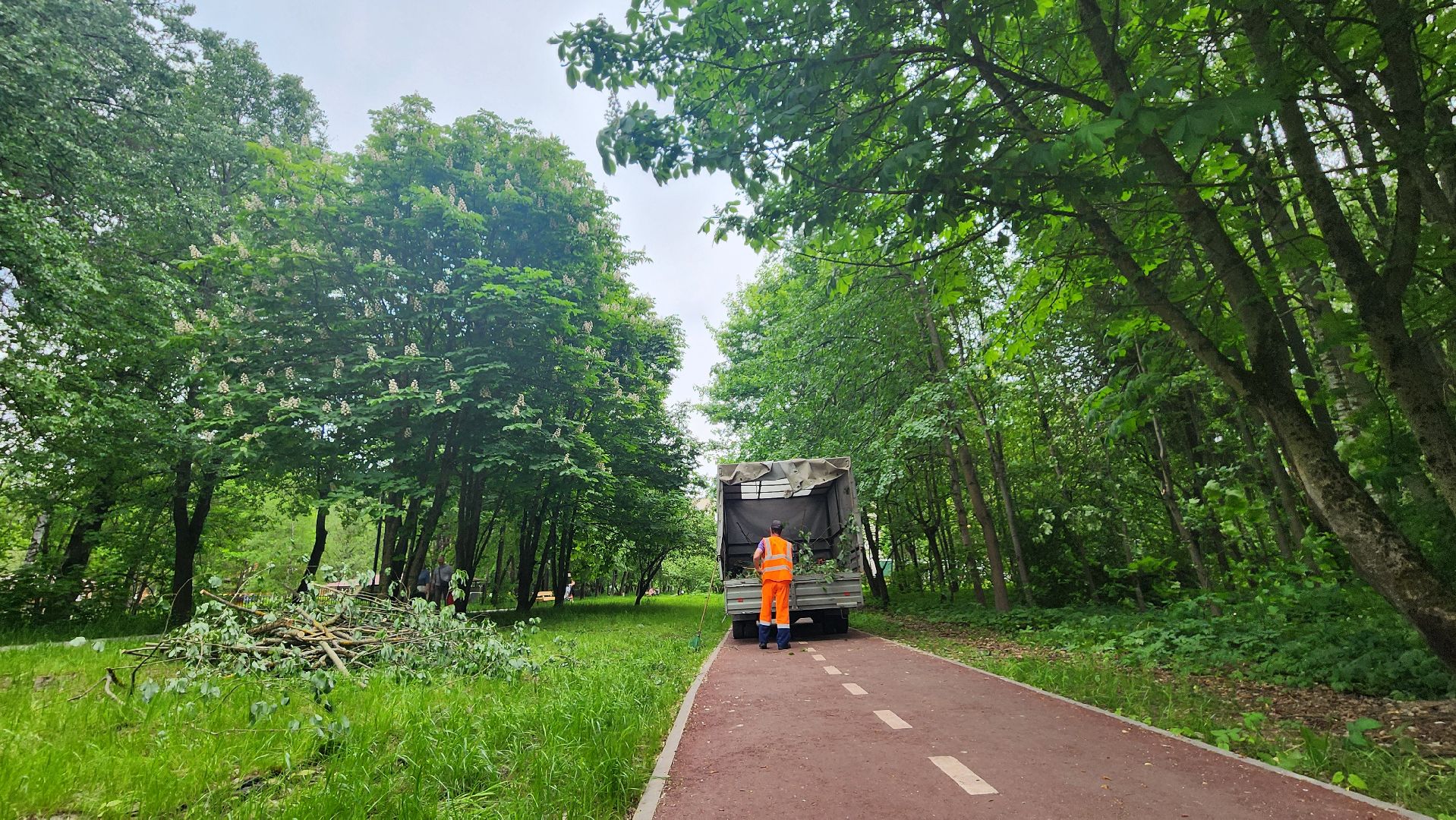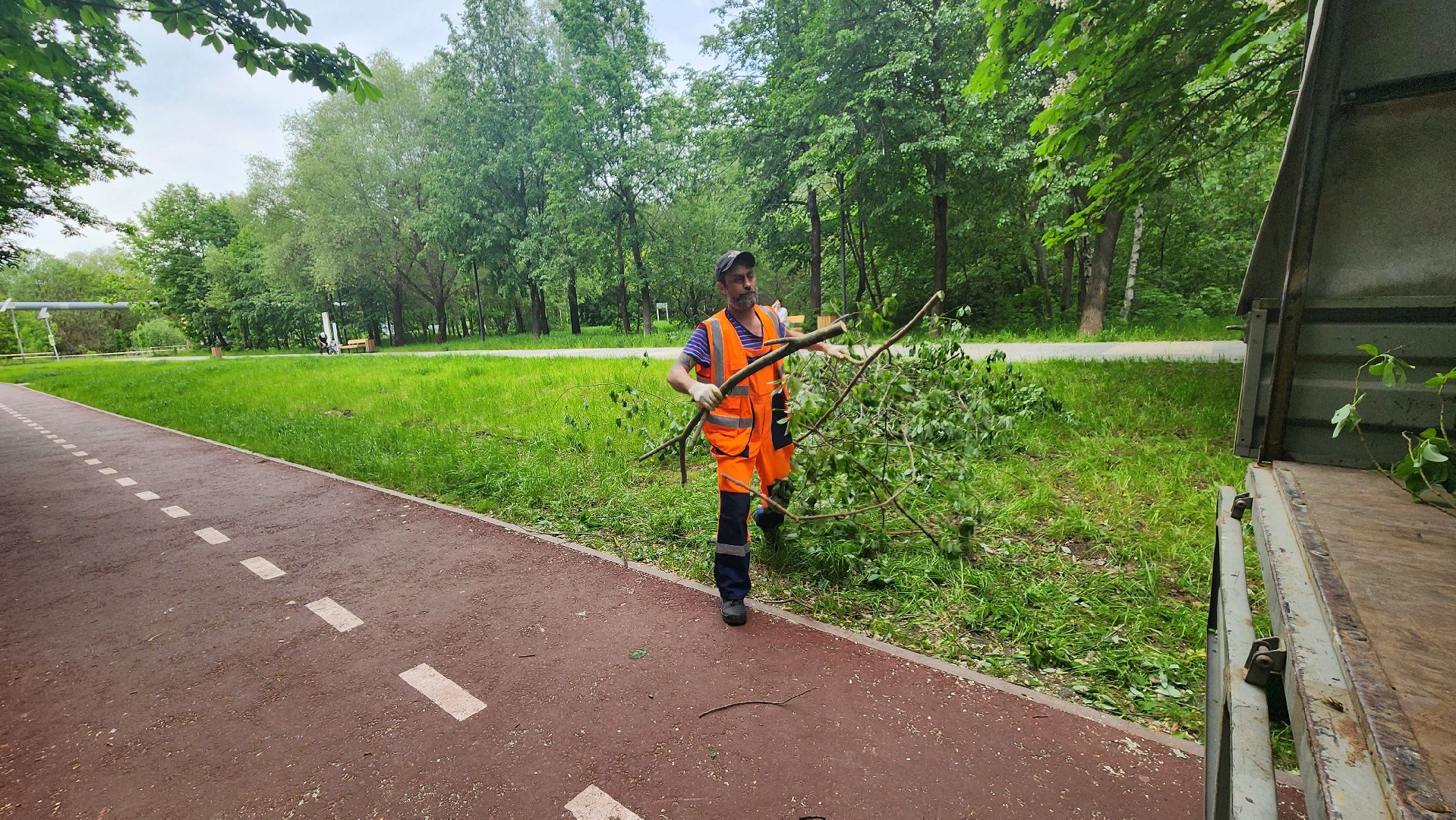 Протвинские коммунальщики оперативно убрали рухнувшее на велосипедную дорожку дерево. Ствол преградил участок пути недалеко от домов 15 и 17 Лесного бульвара. Мастер «Комбината благоустройства», ответственный за этот участок города, сразу вызвал рабочих. Сотрудники организации приехали на «Газели», распилили дерево и крупные ветки бензопилой, погрузили их в кузов и увезли бревна на утилизацию.