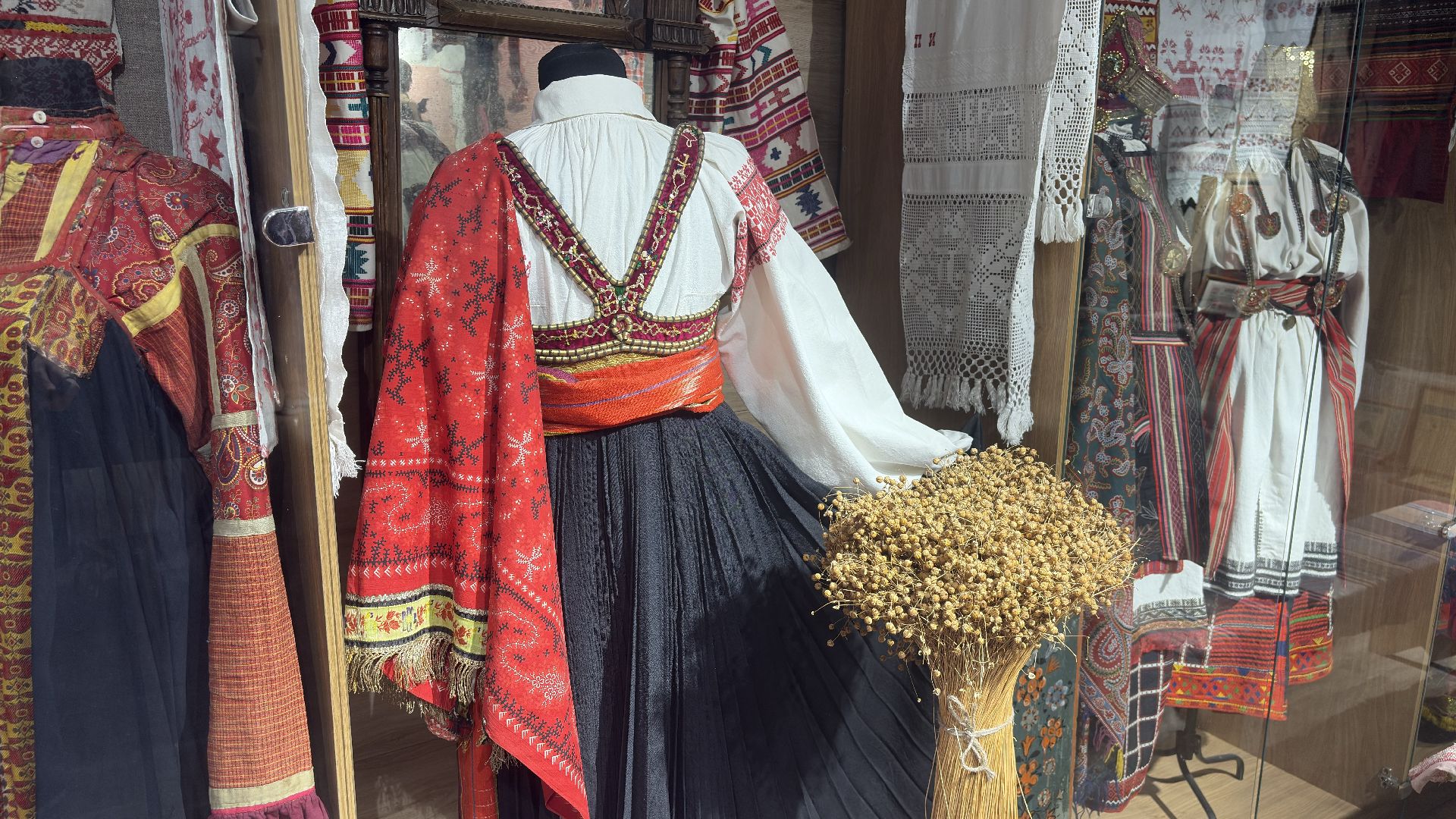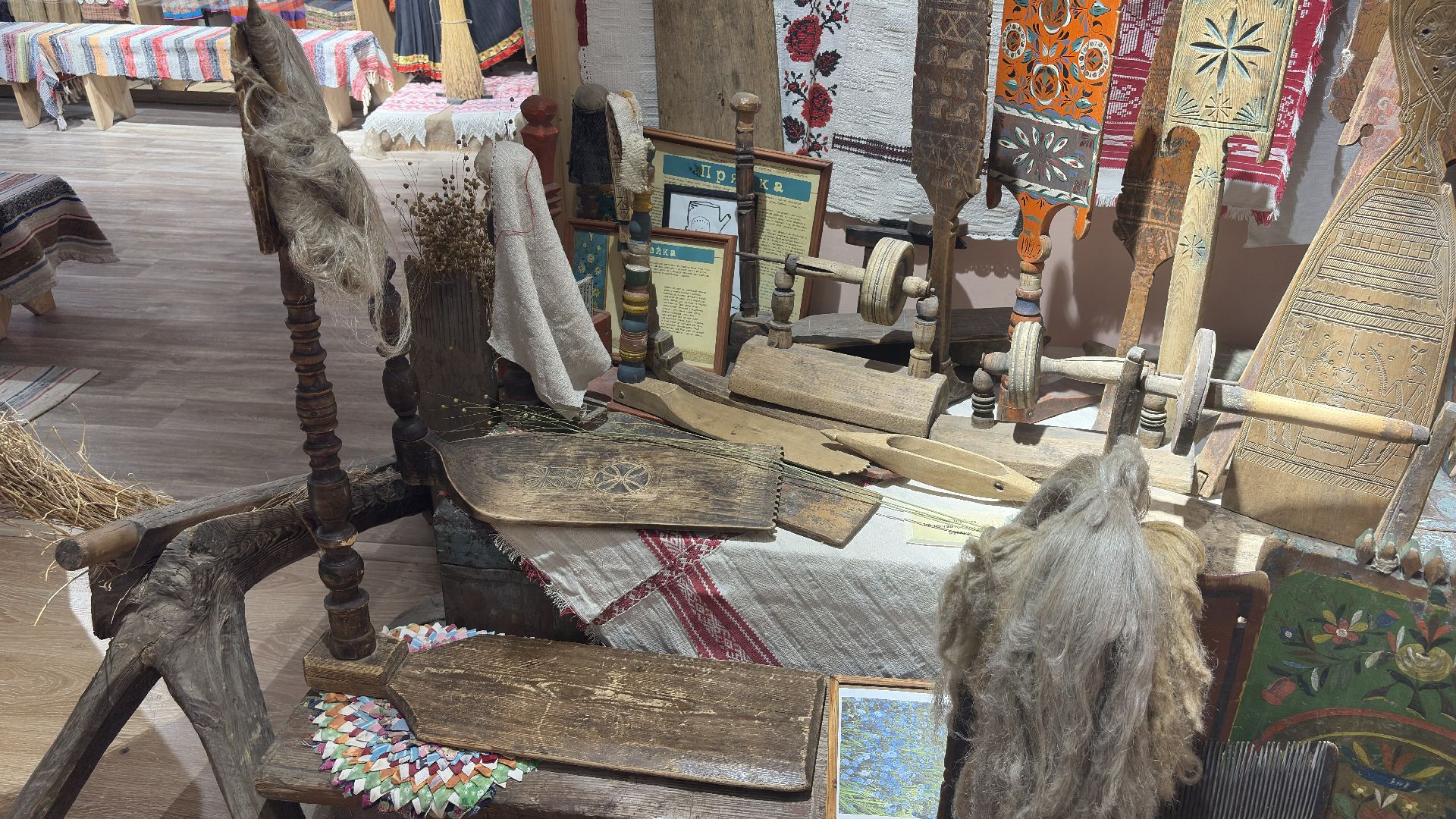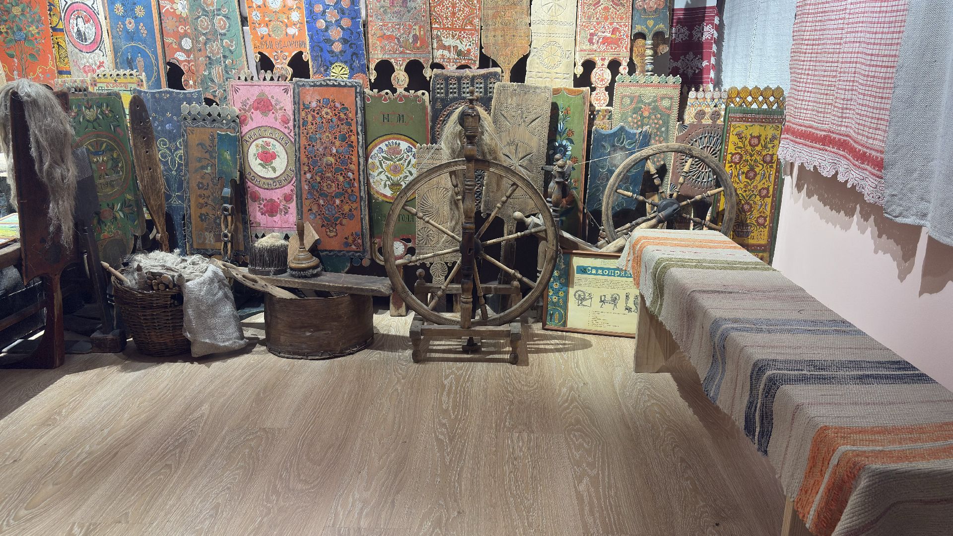 Главным героем экспозиции стал лён, который сопровождал женщину с самого рождения до последнего дня. Девочку повивали на прялке, как на символе будущего мастерства, а в последний путь провожали в льняной рубахе, на рушниках. В музее представлена богатая коллекция: более 80 прялок, свыше 20 праздничных костюмов из разных регионов страны и несчитанное количество рушников, каждый со своей историей и узором.
