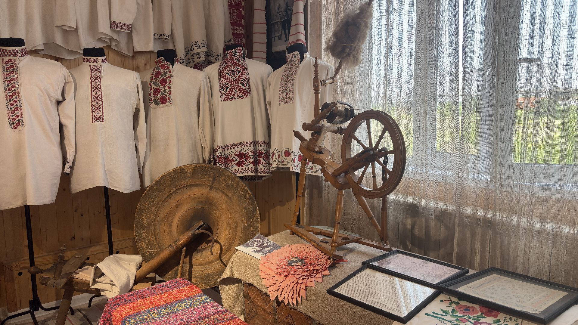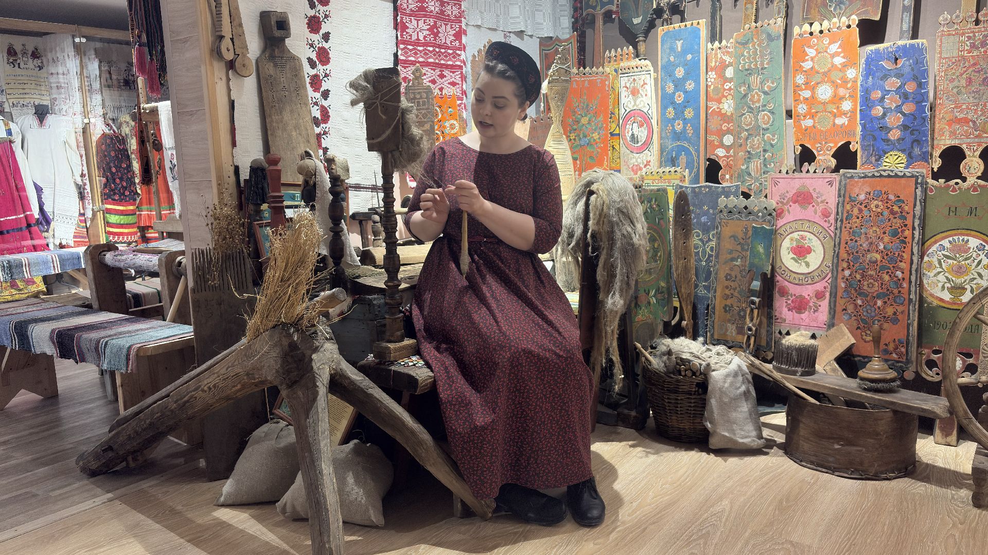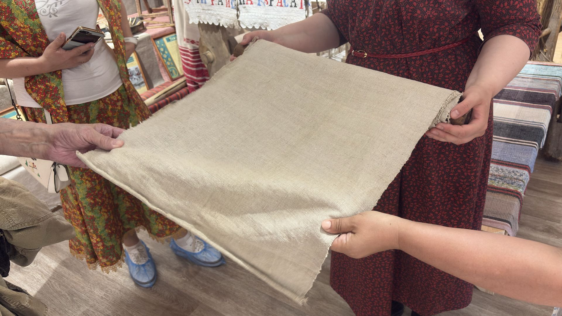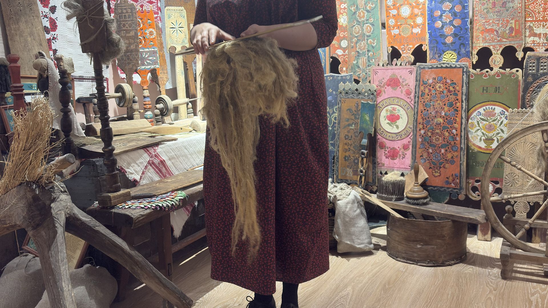 Главным героем экспозиции стал лён, который сопровождал женщину с самого рождения до последнего дня. Девочку повивали на прялке, как на символе будущего мастерства, а в последний путь провожали в льняной рубахе, на рушниках. В музее представлена богатая коллекция: более 80 прялок, свыше 20 праздничных костюмов из разных регионов страны и несчитанное количество рушников, каждый со своей историей и узором.