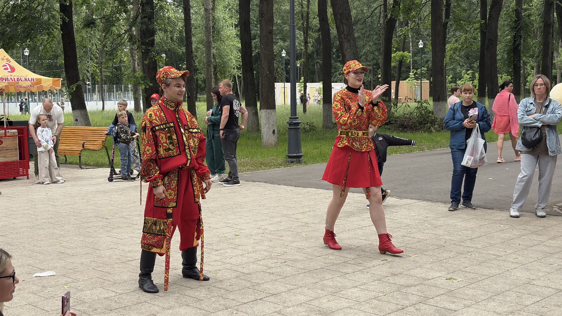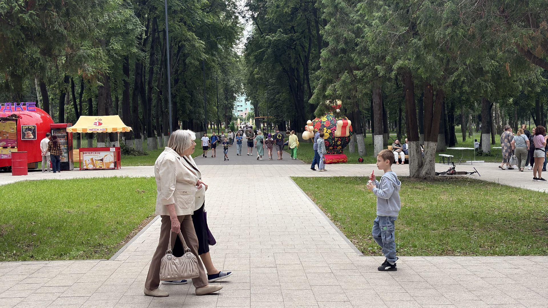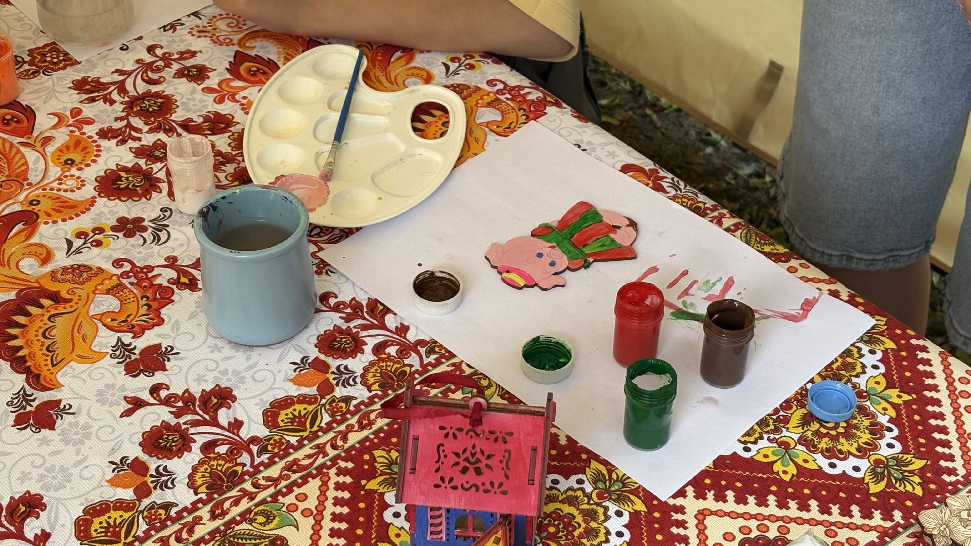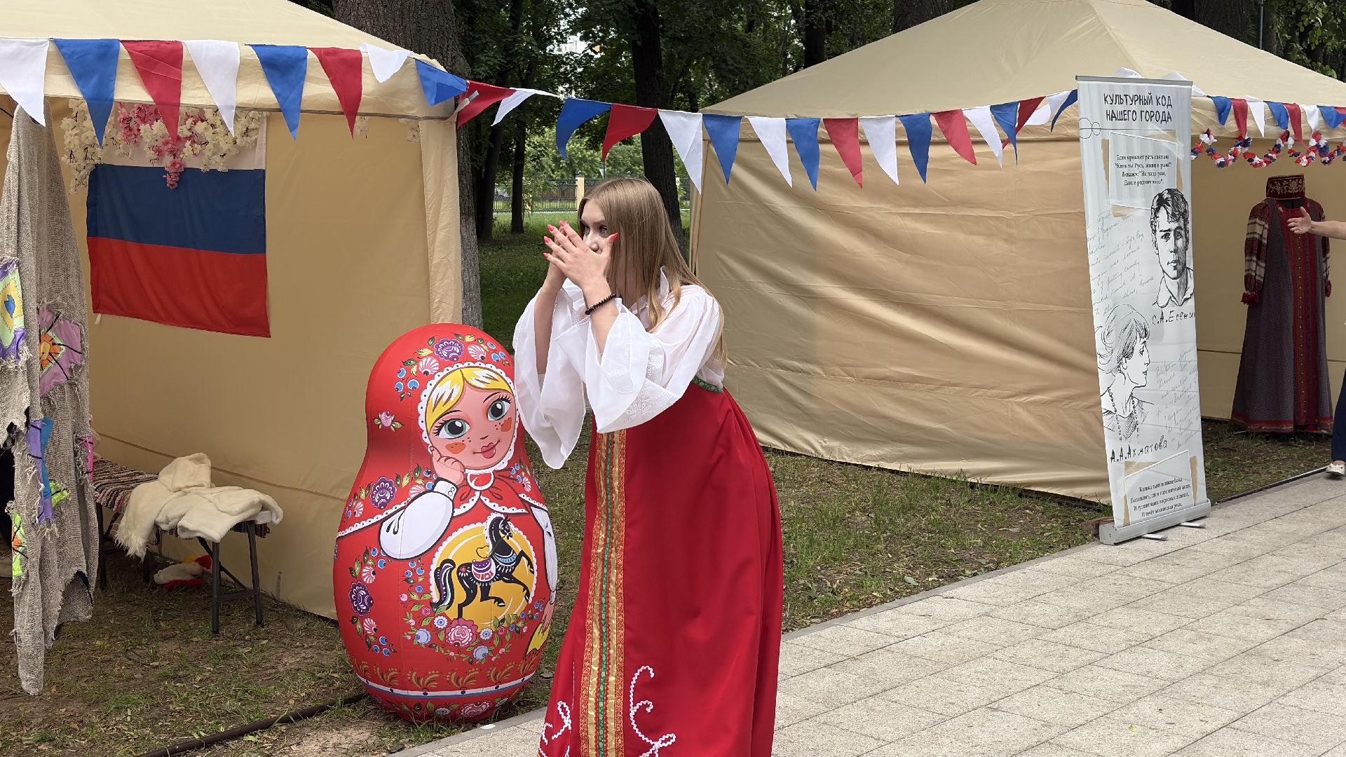 Сегодня Парк Мира наполнен музыкой. Коломенцы празднуют День России. Люди приходят с семьями, с друзьями, кто-то просто гуляет, а кто-то задерживается у палаток с народными ремёслами — здесь дают попробовать расписать сувенир своими руками или собрать открытку из цветного песка. Всё это — не просто развлечение, а возможность прикоснуться к живой традиции.