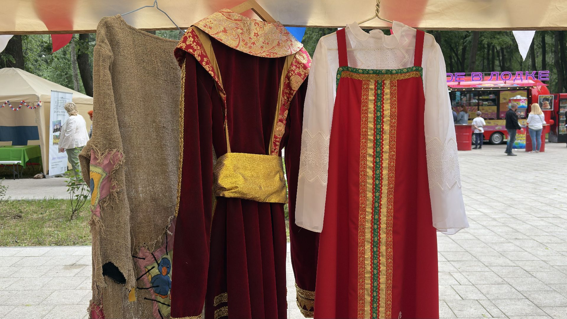 В одной части парка — выставка этнических костюмов и дизайнерских интерпретаций народного стиля. В другой — продажа изделий, сделанных так, как делали их сто лет назад: руками и с душой.