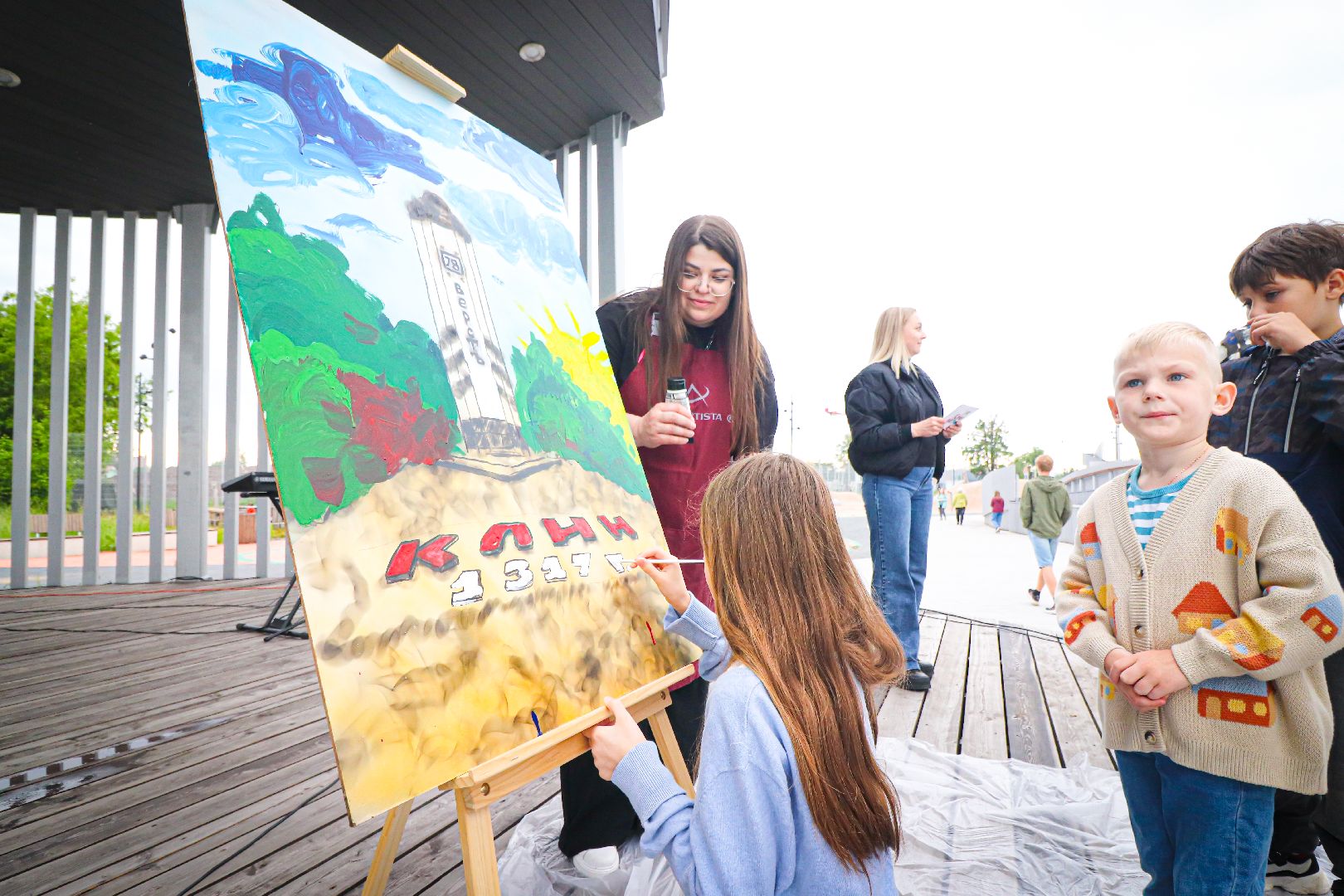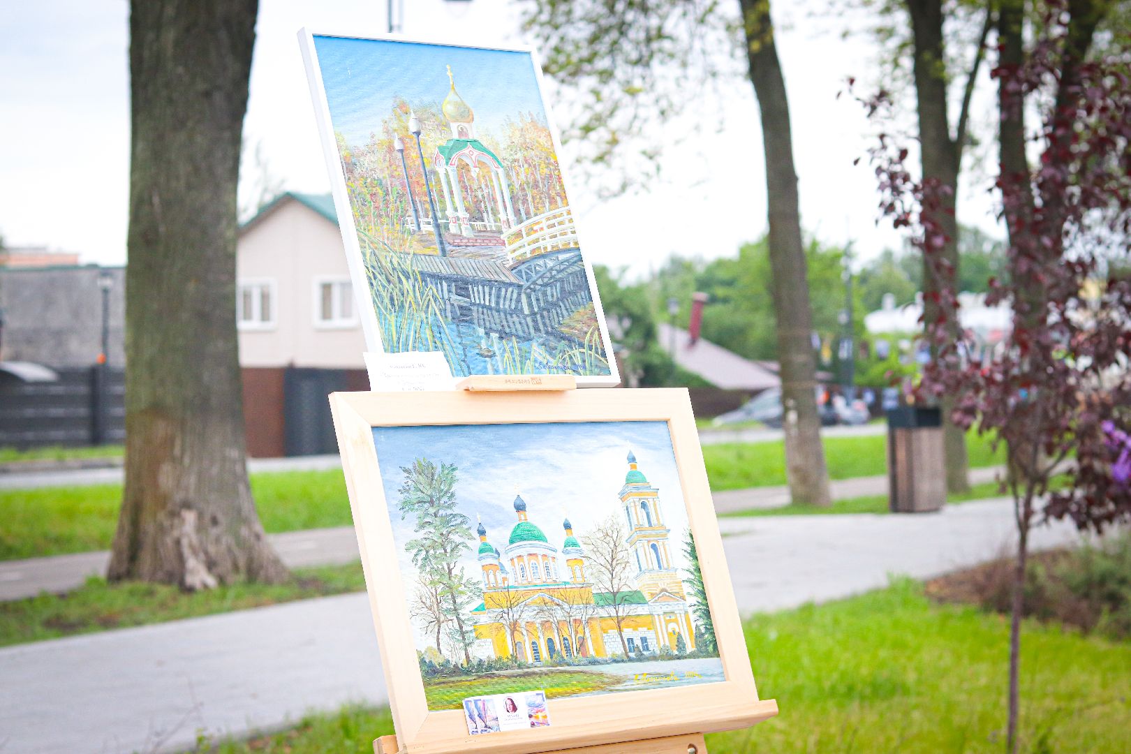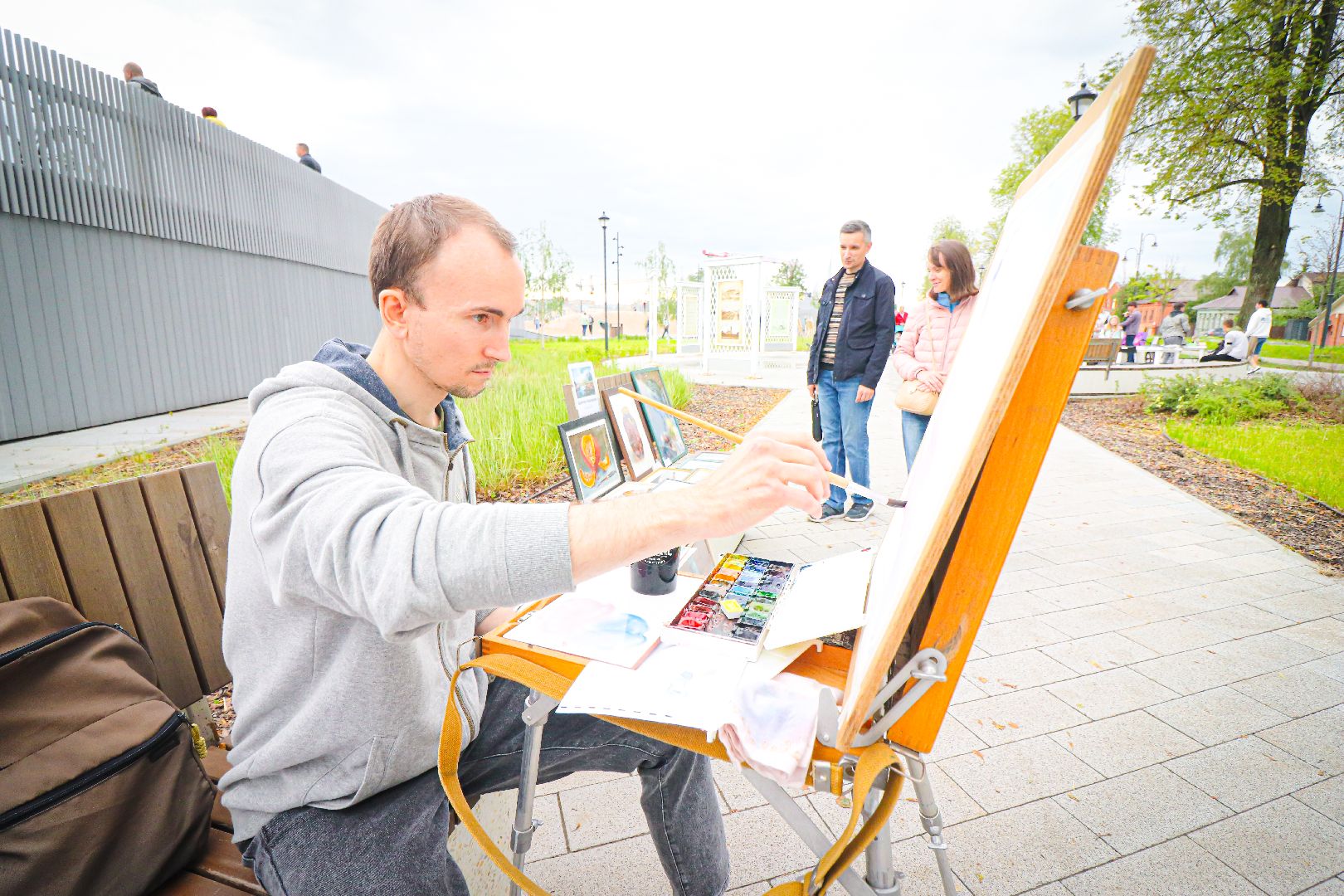 Также можно было пройтись по аллее картинного вернисажа клинских художников. Лично познакомиться с авторами и увидеть написание пейзажей города вживую. Одним из таких стал художник из Москвы и выпускник школы акварели Сергея Андрияки Виктор Никишин. Он пишет картины уже более 25 лет. Закончил Институт электронных технологий на дизайнера и теперь совмещает современное искусство с традиционным, популяризируя это в массы.