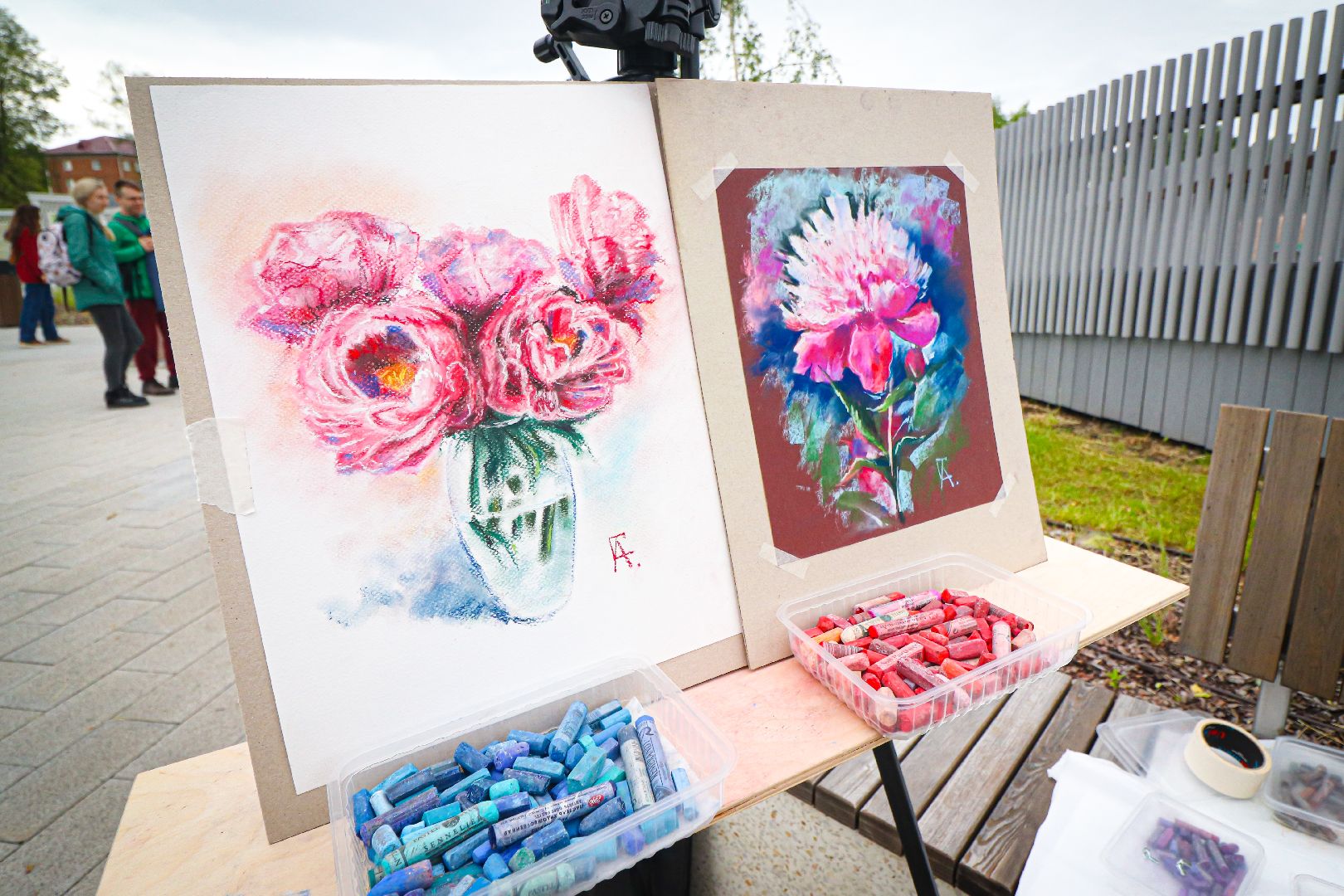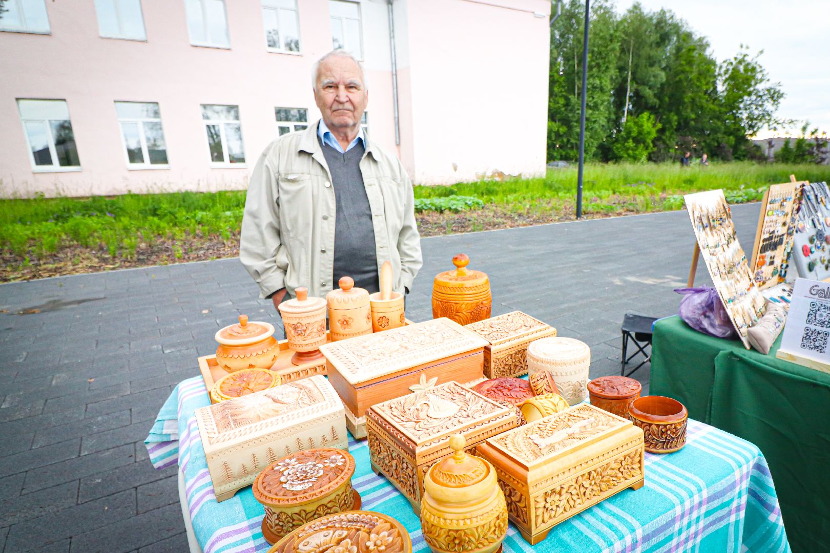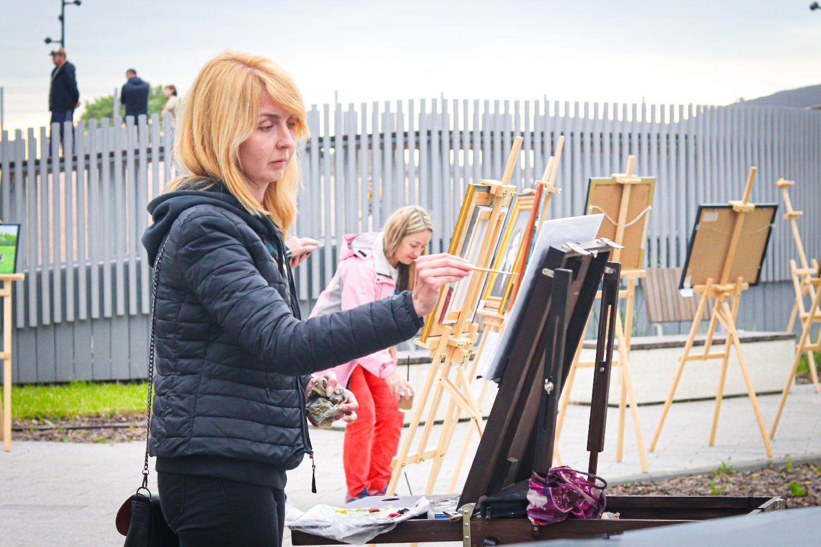 Также можно было пройтись по аллее картинного вернисажа клинских художников. Лично познакомиться с авторами и увидеть написание пейзажей города вживую. Одним из таких стал художник из Москвы и выпускник школы акварели Сергея Андрияки Виктор Никишин. Он пишет картины уже более 25 лет. Закончил Институт электронных технологий на дизайнера и теперь совмещает современное искусство с традиционным, популяризируя это в массы.