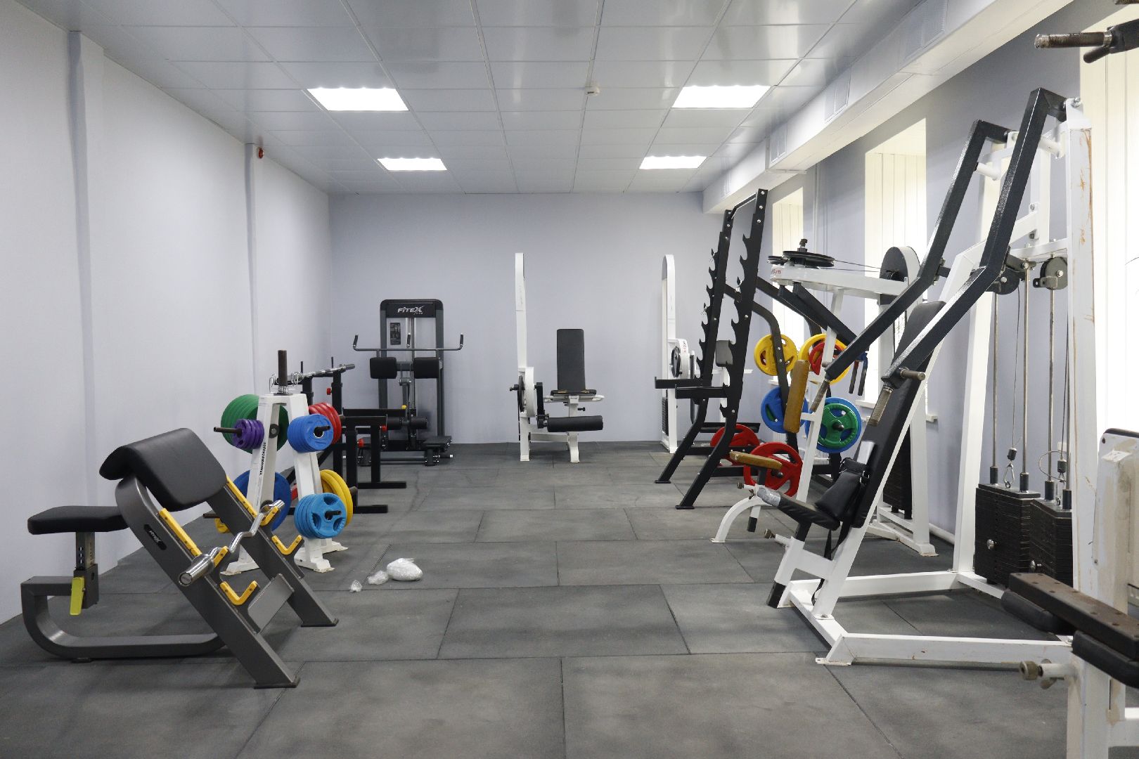 Работы в двух залах, душевой и женской раздевалке на сегодняшний день уже завершены. Строители здесь обновили стены, сделали качественный потолочный дизайн, покрыли пол специальным резиновым покрытием, обеспечивающим безопасность занятий спортом, и в одном из залов установили большие зеркала для контроля техники упражнений.