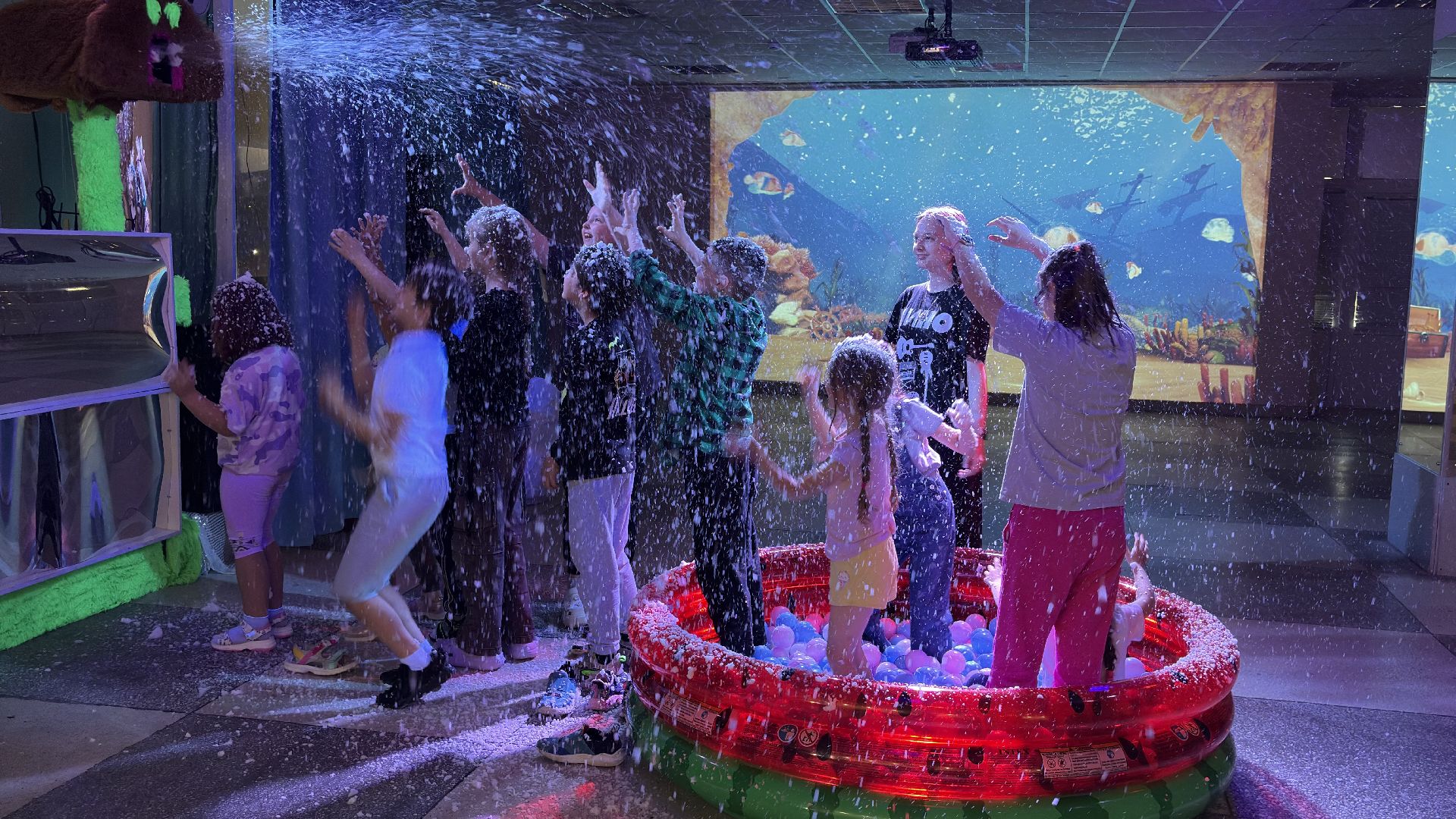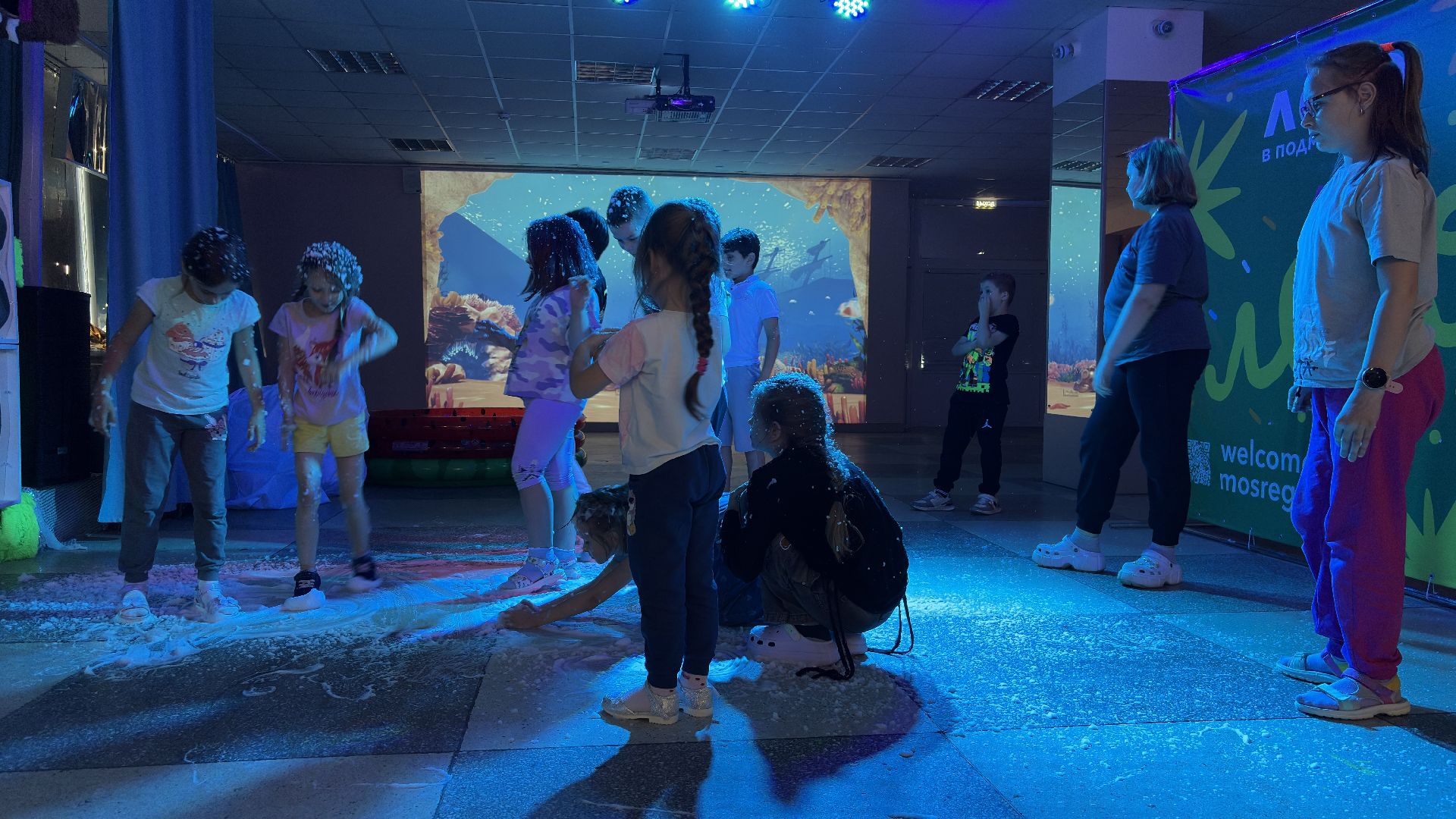 Особое внимание уделяется деталям: все декорации, оборудование и даже пеномашина с гипоаллергенной пеной — дело рук самих работников Дворца культуры. Сотрудники готовили пространство и технические новинки своими силами, чтобы создать для детей максимально насыщенную и запоминающуюся летнюю смену.