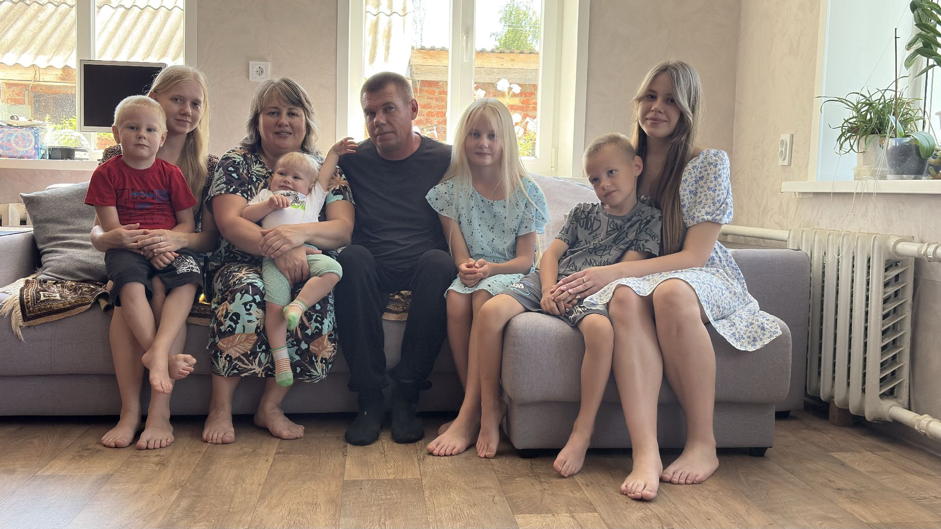 Оксана и Алексей познакомились 27 лет назад. Ей было всего 14, но уже тогда она знала – это он. Спустя три года они поженились и больше не расставались. Сегодня в их доме растут шестеро детей: Анна (22 года), Алёна (16), Арина (11), Егор (6), Матвей (4) и маленькая Алевтина, которой всего год и три месяца.