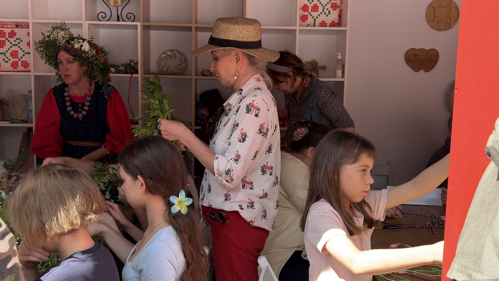 Гости с удовольствием участвовали в танцевальных флешмобах и мастер-классах: плели венки, ткали пояса, создавали броши и эко-игрушки, мастерили свечи из вощины. Атмосфера народного праздника царила на всей площади.