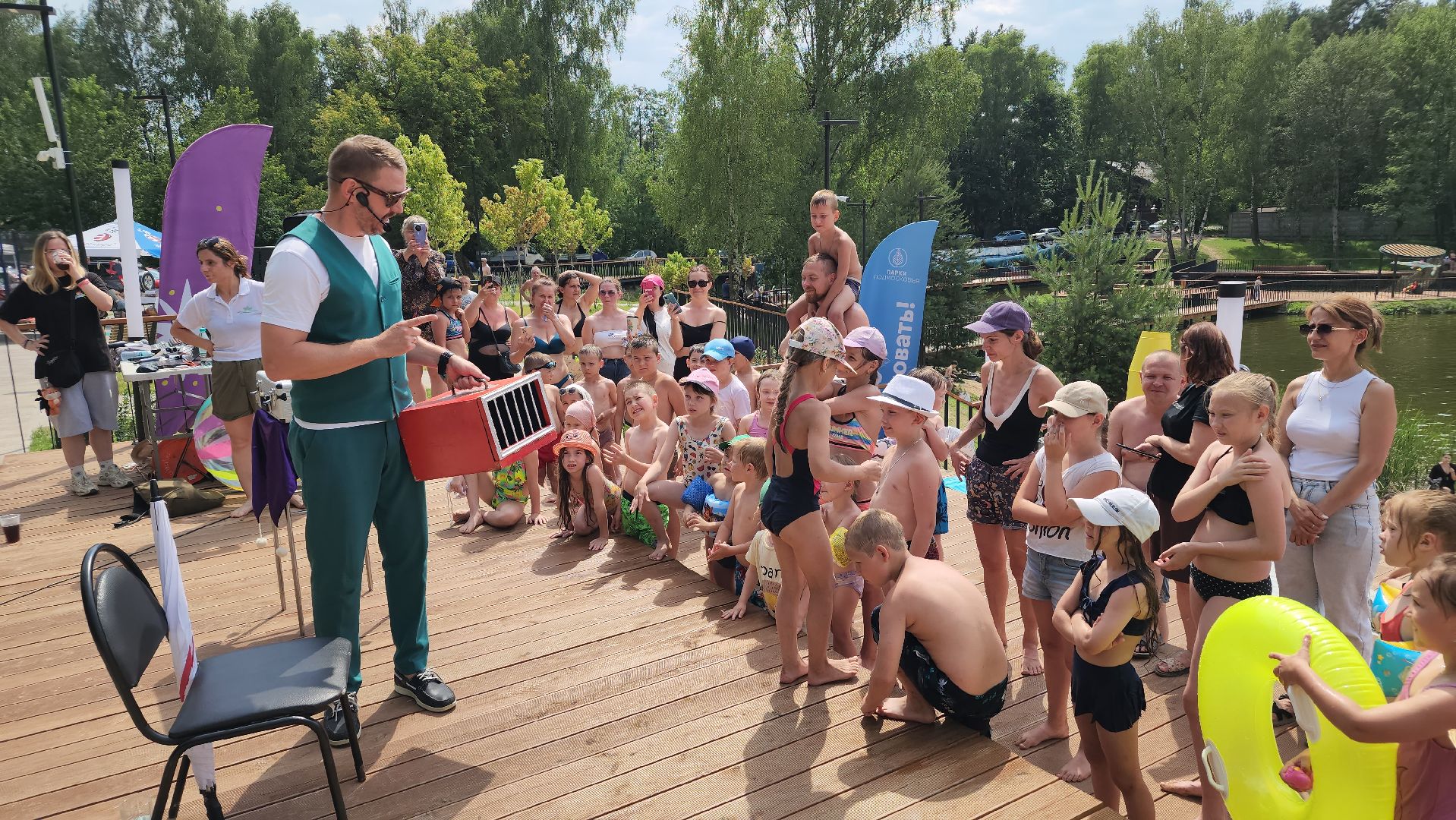 Заплыв на SUP-бордах, шоу иллюзий и пенная вечеринка: в Лосино-Петровском отметили День рыбака на Суворовских прудах