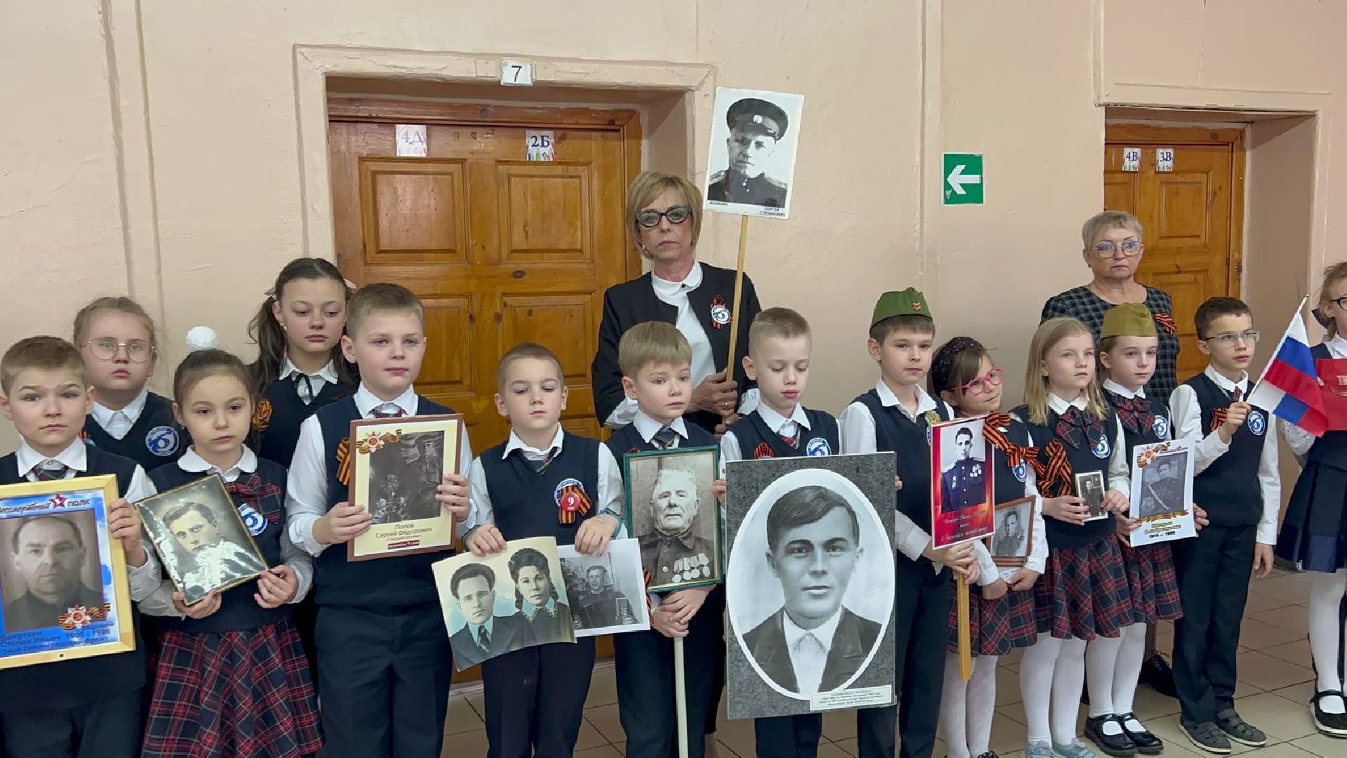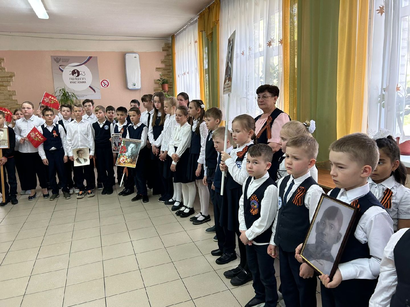 Гимназисты с гордостью пронесли портреты своих прадедов по школьным коридорам и почтили их память минутой молчания.