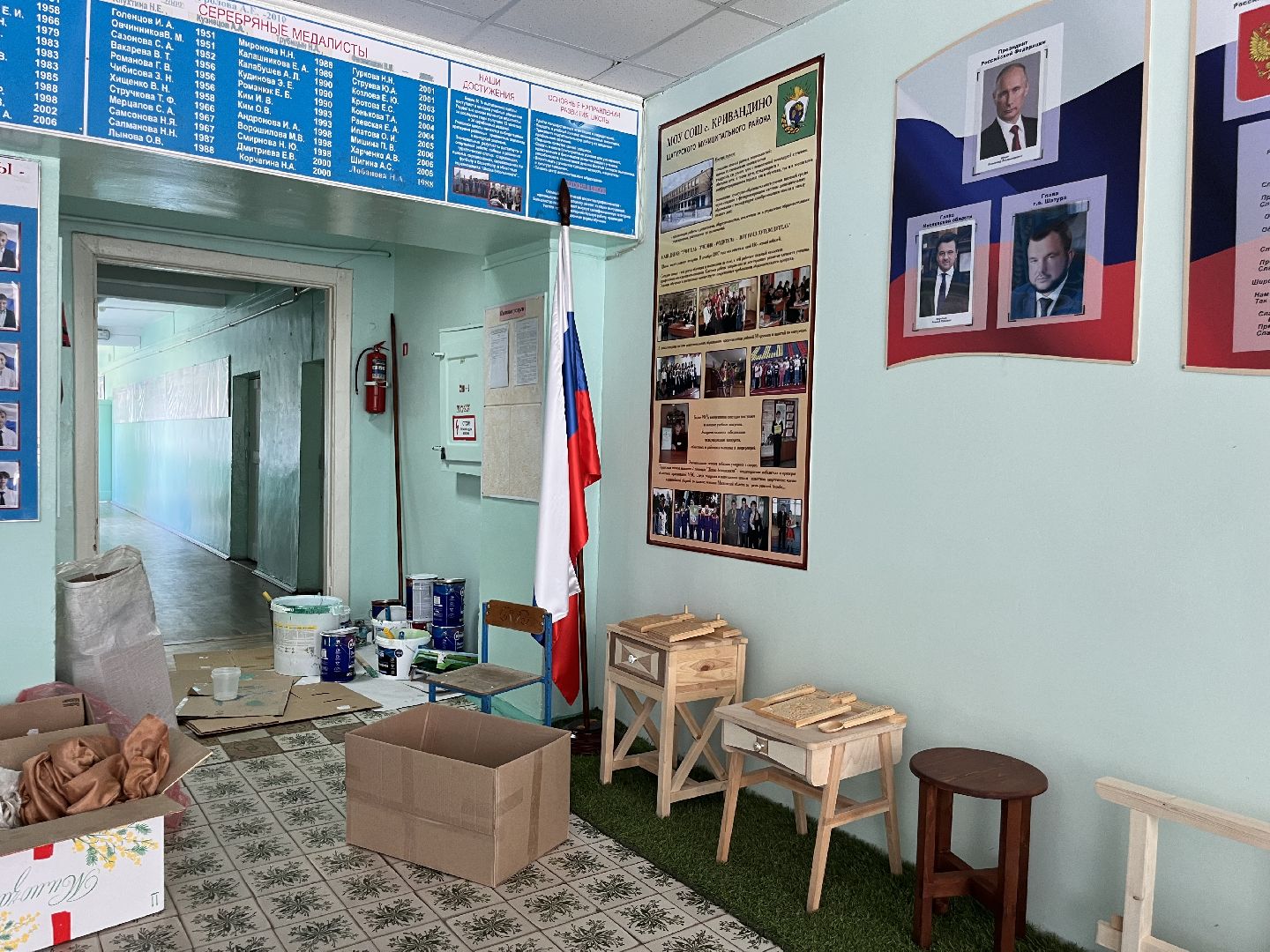 Материалы для покраски и частичной штукатурки закупаются за счёт бюджета школы, а «освежающий» ремонт выполняют самостоятельно.