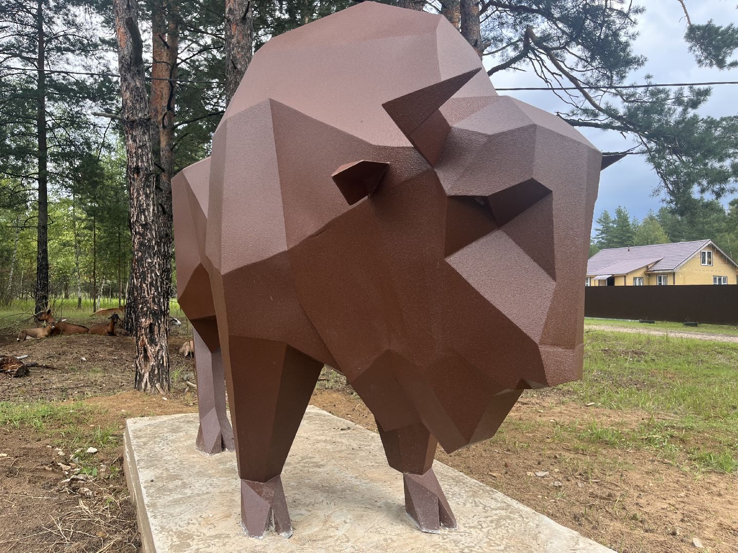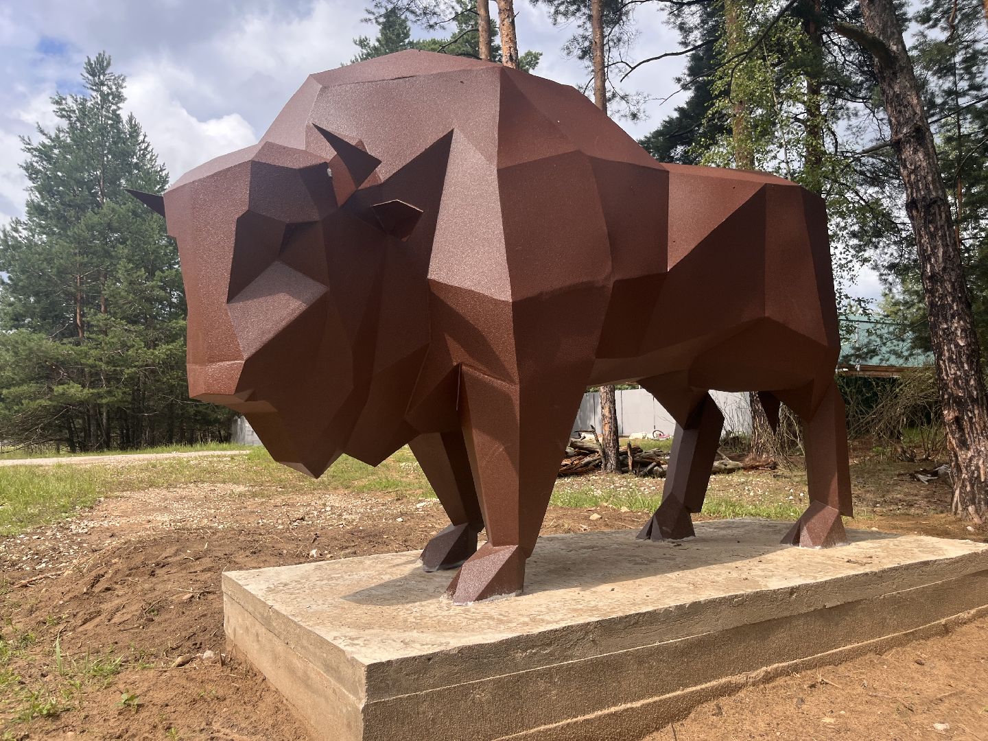 Скульптура зубра: подарок местного умельца украсил деревню Осаново-Дубовое под Шатурой