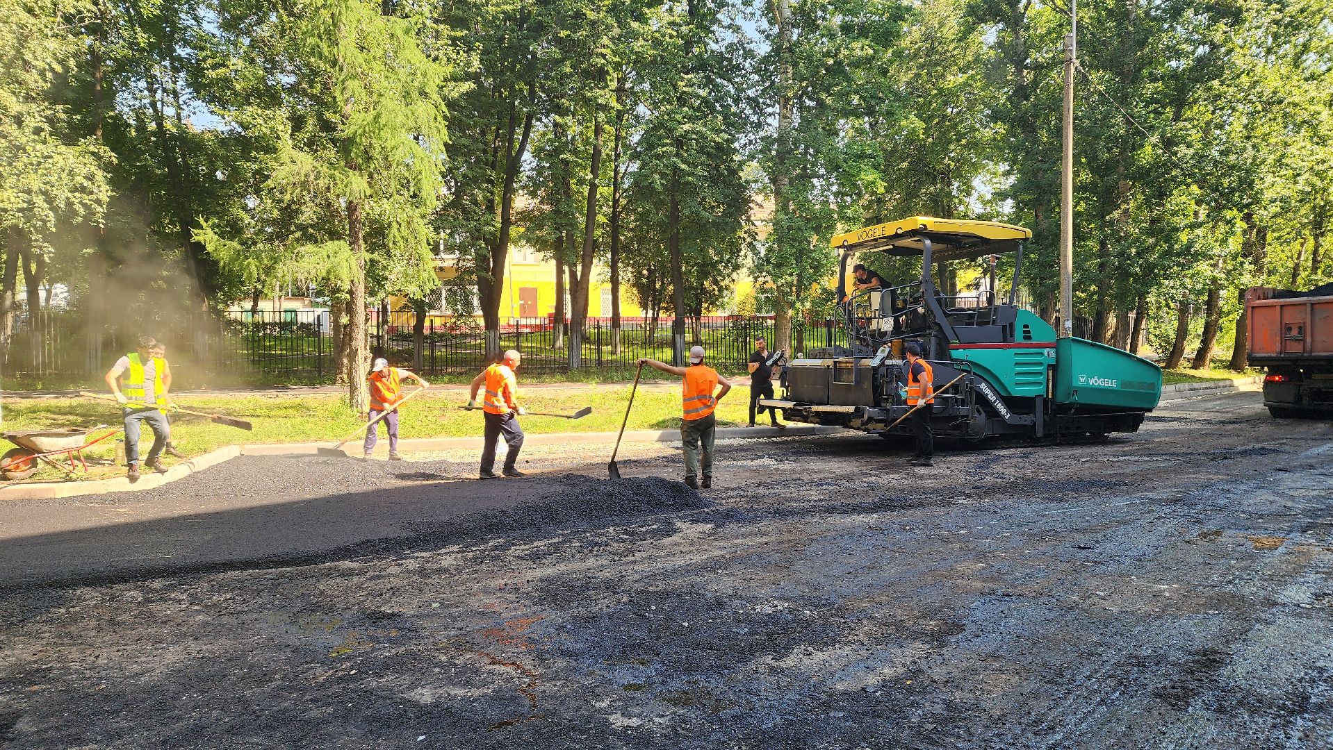По словам начальника участка Тельмана Гиголяна, работают больше десяти человек. Техники достаточно, она обеспечивает все производственные потребности: три катка-укладчика асфальта, четыре самосвала, водовоз, трактор, газель.