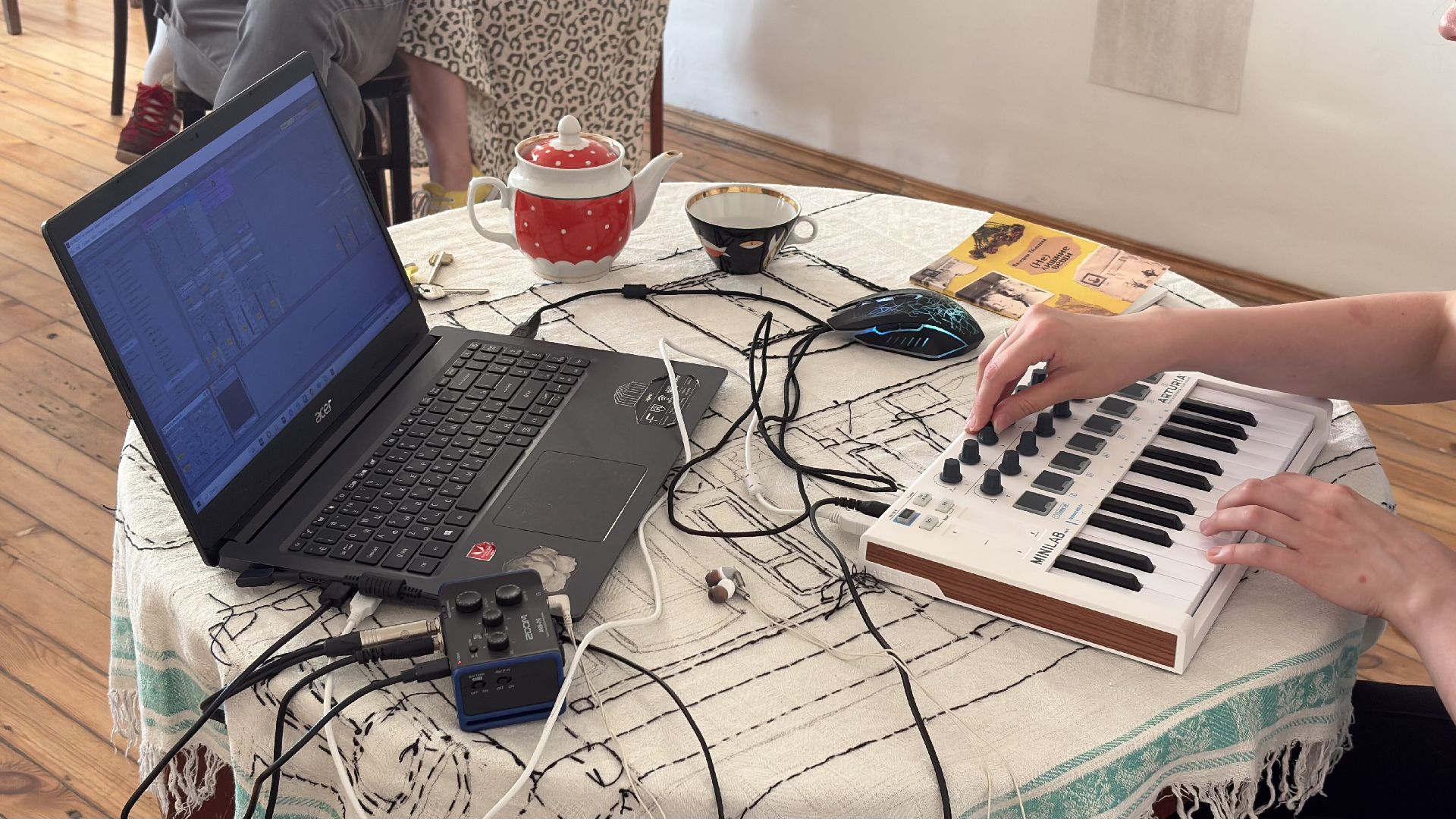Для «(не)лишних звуков» автор работала с акустикой самой Арткоммуналки. Во время проживания в пространстве музея она записывала повседневные звуки: звон ключей, скрипы половиц, стук посуды, шелест ткани. Основные записи велись в ночное время, когда среда становится максимально «чистой» для звукозаписи.
