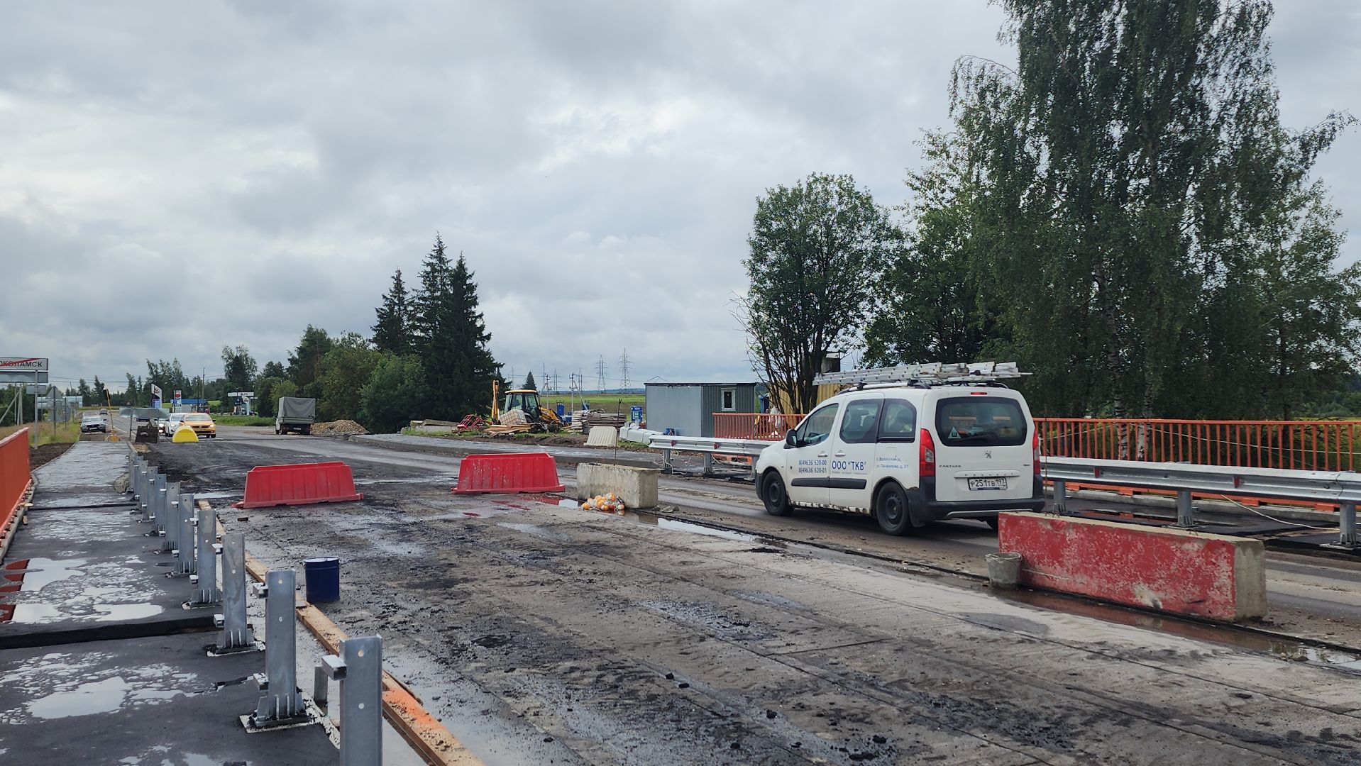 Сейчас специалисты устанавливают гильзы для водоотводов и отбойники по краям проезжей части моста. Последним штрихом станет асфальтирование. Пока же движение по путепроводу, ведущему из Волоколамска на Ждановское шоссе, работает в реверсивном режиме и регулируется временными светофорами.