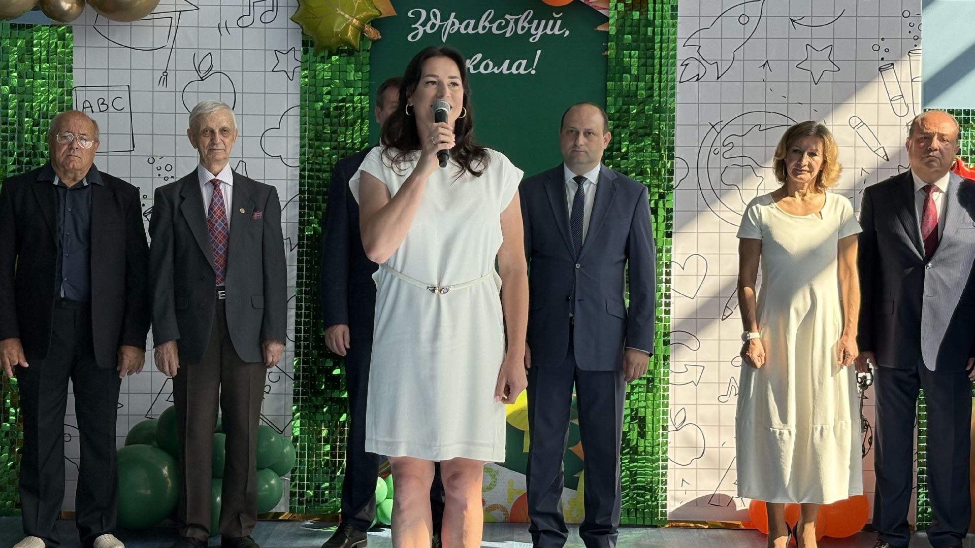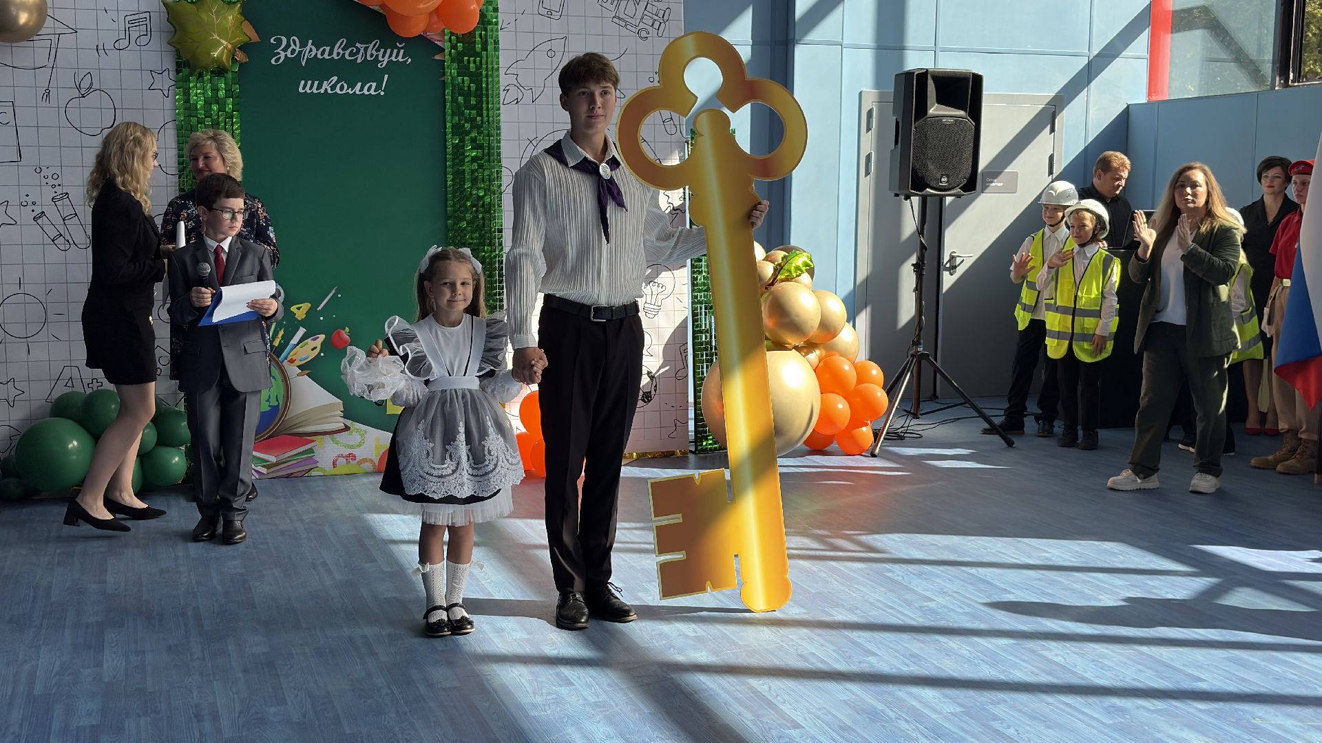 Торжественная линейка прошла прямо в спортивном зале. Пять первых и три одиннадцатых класса, почётные гости, учителя и родители собрались, чтобы разделить долгожданное событие. Символичным моментом стала сценка, где малыши в касках строителей «возводили» школу, а потом торжественно вручили ключ директору и ученикам. Завершили праздник трогательный танец первоклассников и выпускников и, конечно, традиционный первый звонок, когда одиннадцатиклассник пронёс на руках маленькую школьницу с колокольчиком.