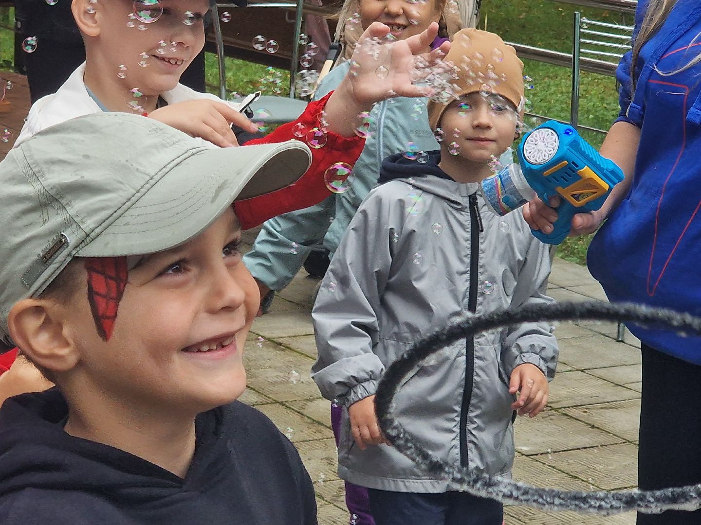 Главной волшебницей праздника стала организатор благотворительного проекта «Дари тепло» Кира Крылова, которая предстала перед детьми в образе феи мыльных пузырей. Она показала шоу, наполнившее двор переливающимся чудом. Её юные помощницы из школьного волонтёрского отряда «Вместе мы сила» рисовали детям аквагрим.