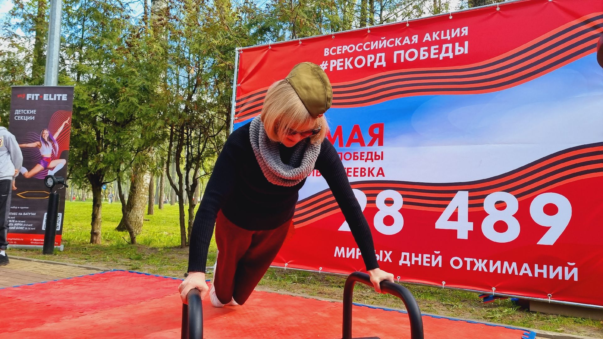 «За Победу. За отцов, дедов, прадедов. Помним . Празднуем. Можно и отжаться»,- после 50 отжиманий рассказал Валентин Рыбалкин, пришедший в парк с женой и сыновьями.