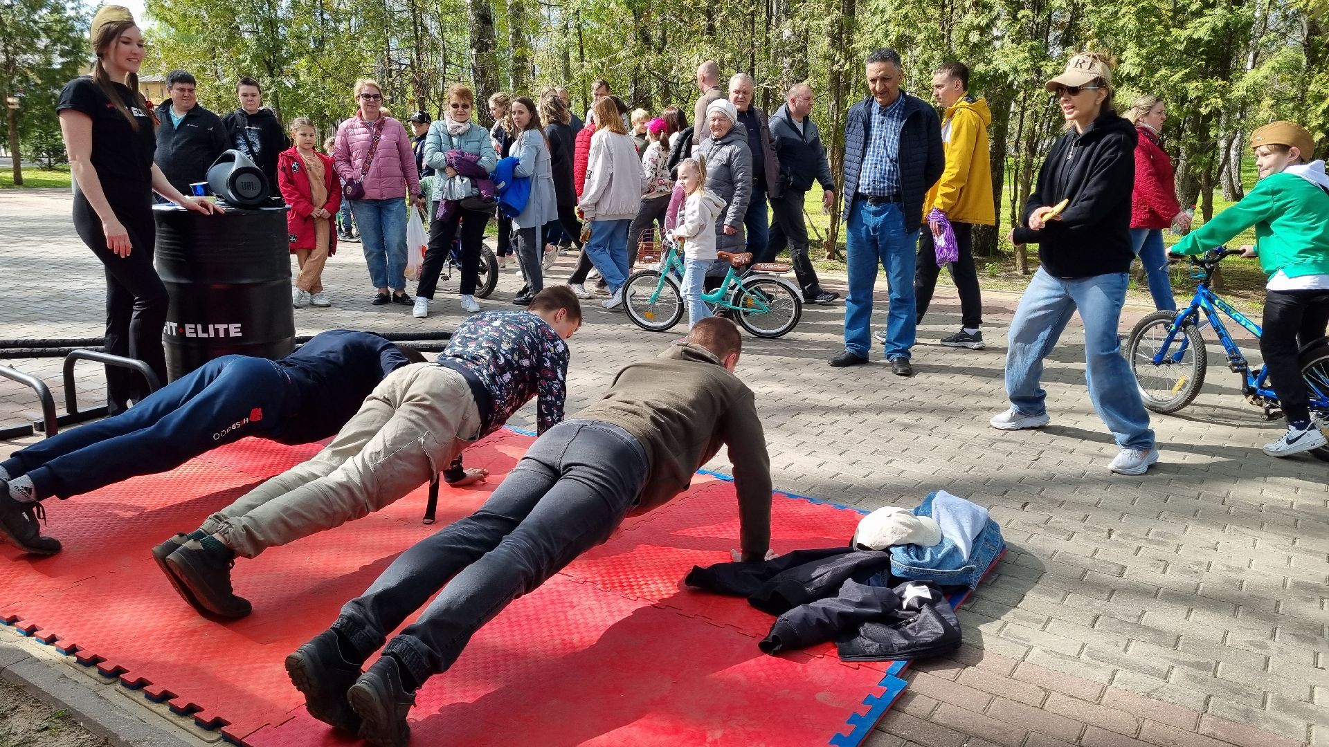 Горожане с настроением отжимались под дружный счёт присутствующих. Дети, взрослые, мужчины, женщины от 5 раз до 120. Меньше, чем за два часа, была достигнута цифра 28 498 раз.