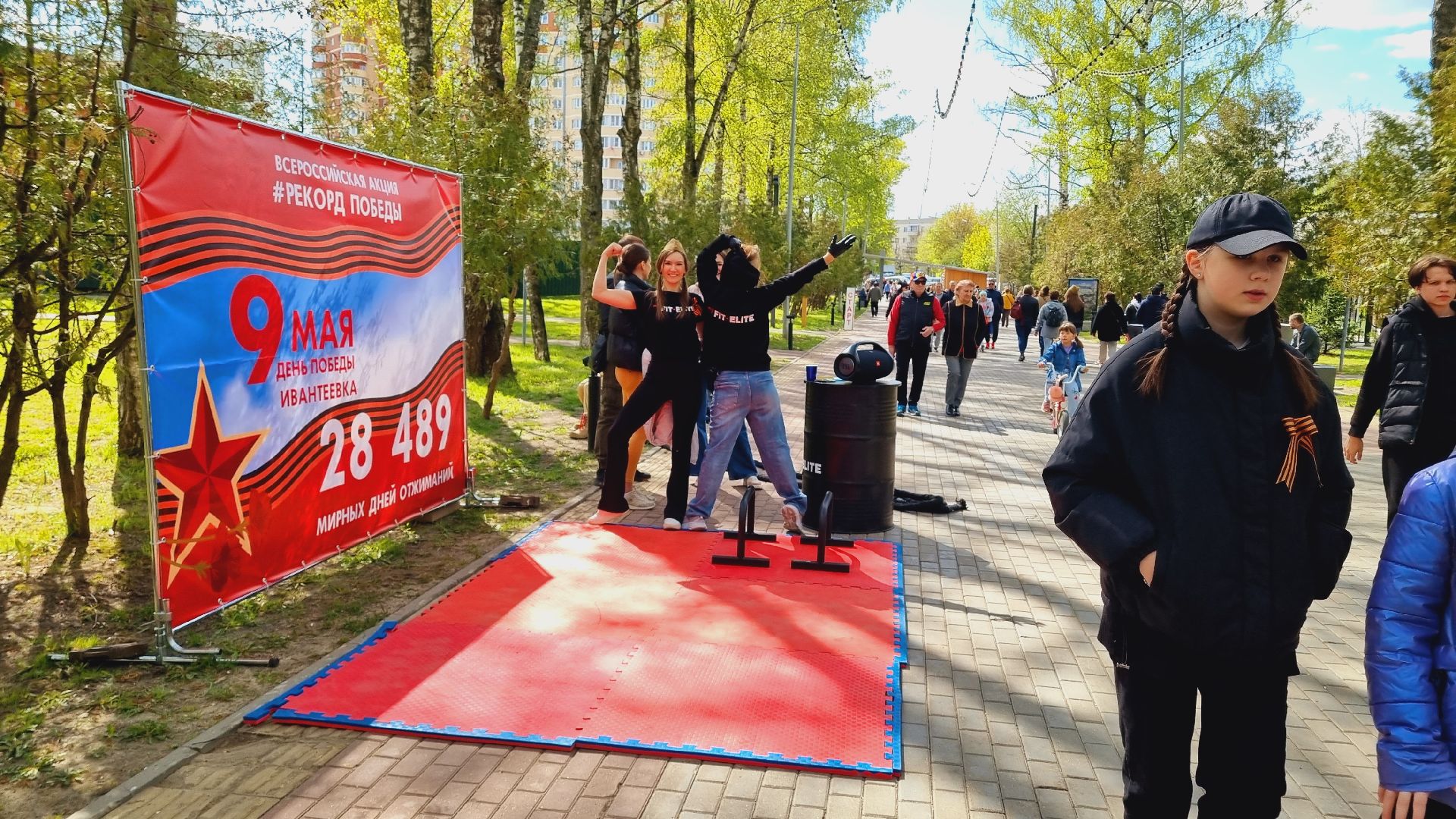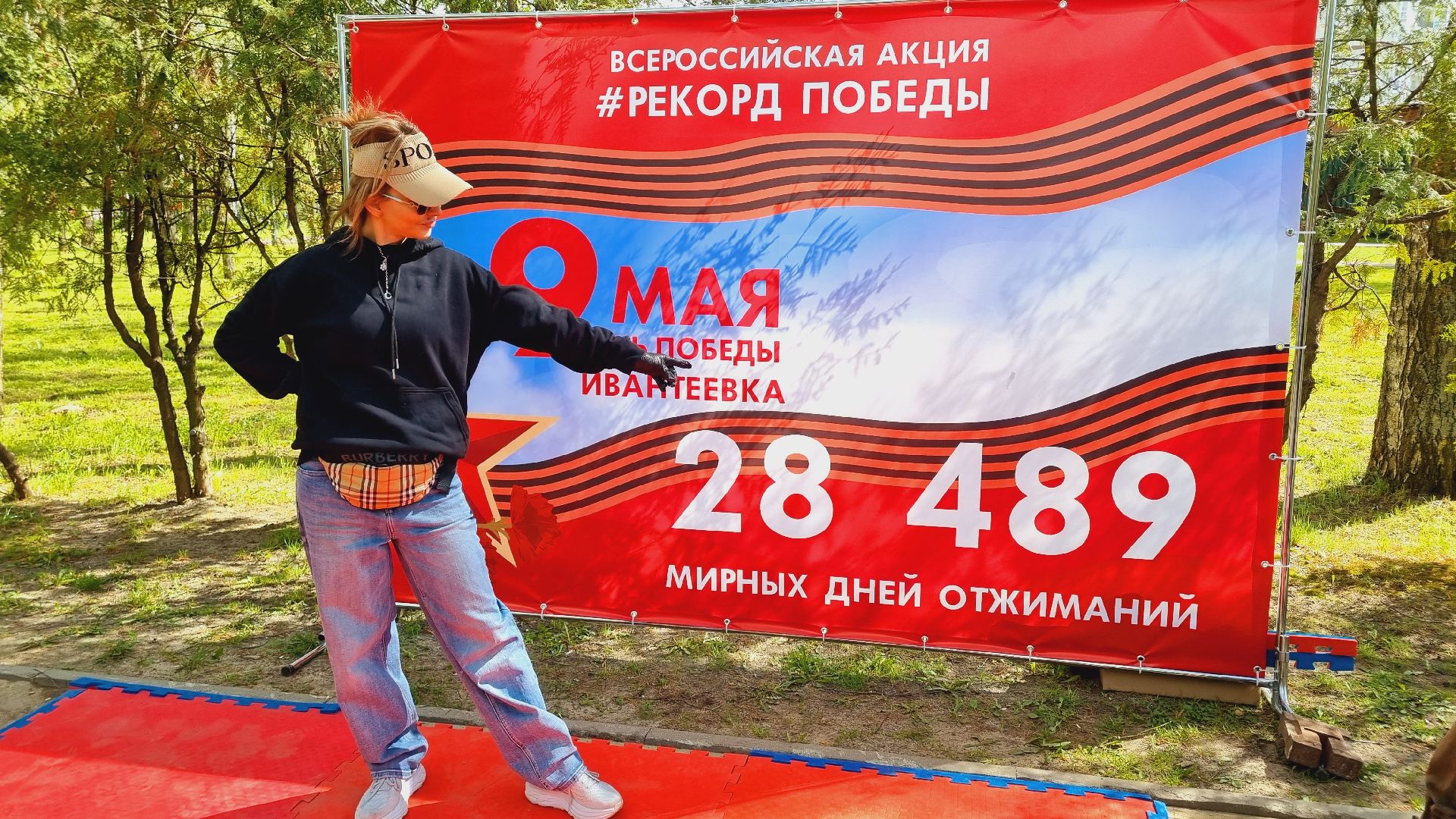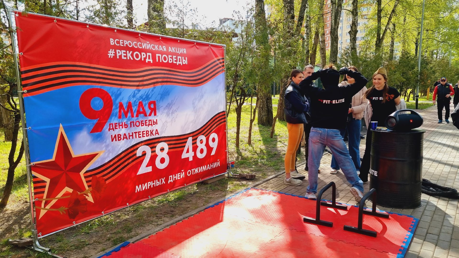 Мероприятие, посвящённое Дню Победы, провёл ивантеевский фитнес-клуб для отдыхающих в Центральном городском парке. Суть мероприятия заключалась в отжимании за каждый мирный день прошедших 78 лет с Дня Победы.