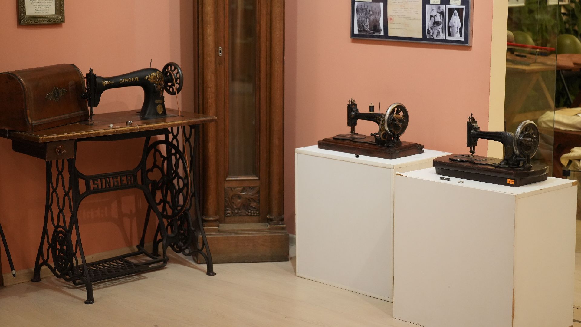 Жемчужина экспозиции — машинка 1914 года выпуска, созданная на шотландском заводе. Примечательно, что именно Шотландия стала первой страной за пределами США, где компания «Зингер» наладила производство. Страна славилась своими традициями в машиностроении и высокой квалификацией рабочих.