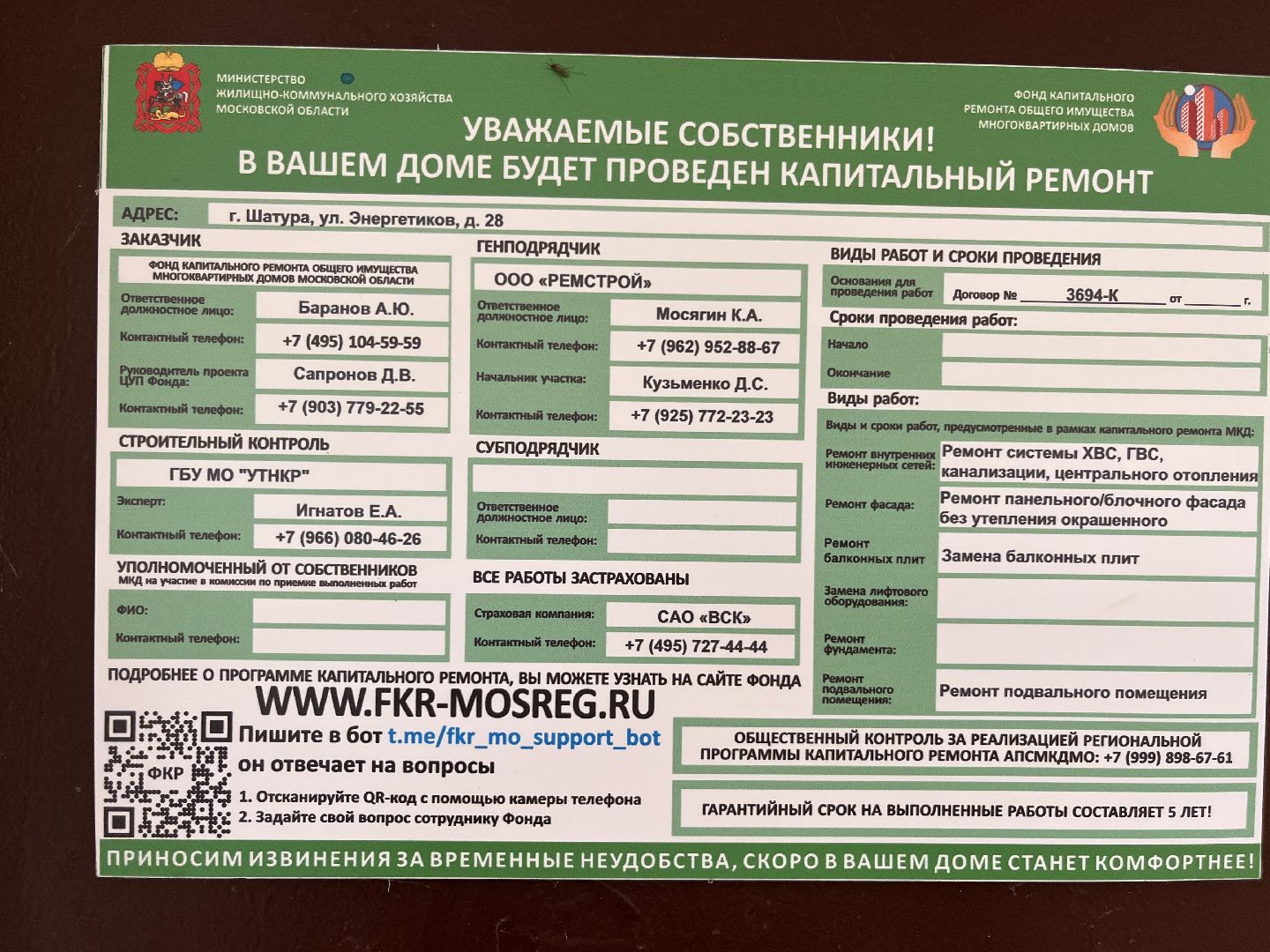 Любовь Жукова, начальник отдела жилищной политики администрации городского округа Шатура, сообщила, что в случае возникновения каких-либо вопросов жители могут обратиться к специалистам. Их контакты указаны на информационном щите. На данный момент жалобы от местных жителей не поступали.
