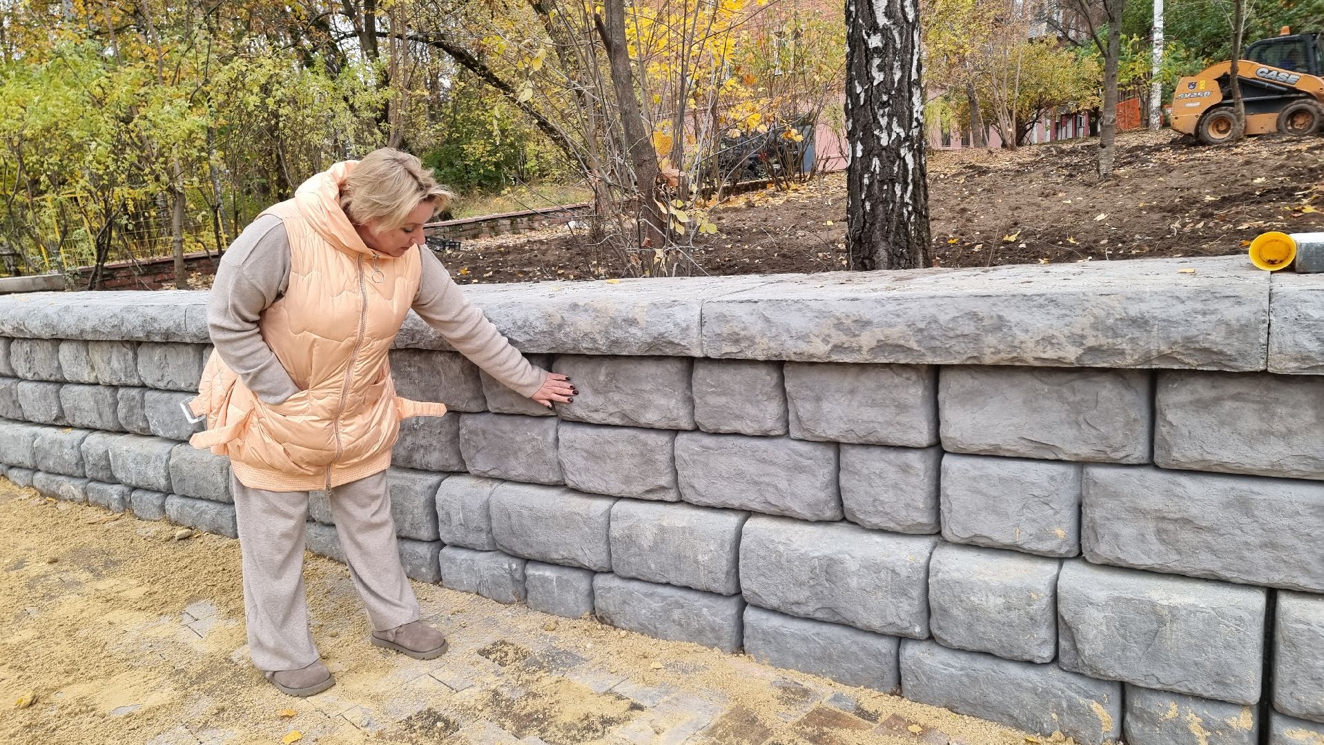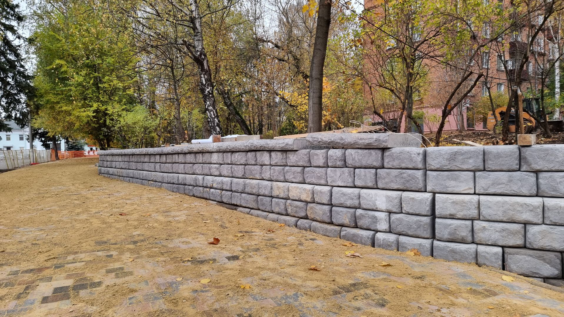 Отдельного внимания заслуживает новая подпорная стена. Строители делают её из прочных бетонных блоков, рассчитанных на долгие годы службы. Чтобы конструкция не пострадала от влаги и подвижек грунта, фундамент углубили в землю. А за счёт увеличенной высоты стены дождь больше не будет размывать почву и пачкать тротуары грязью.