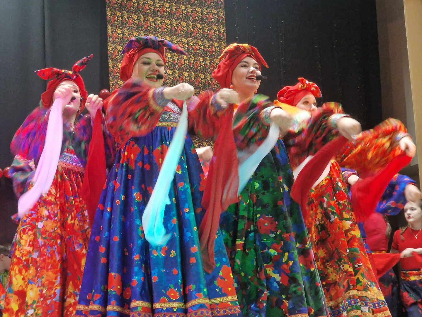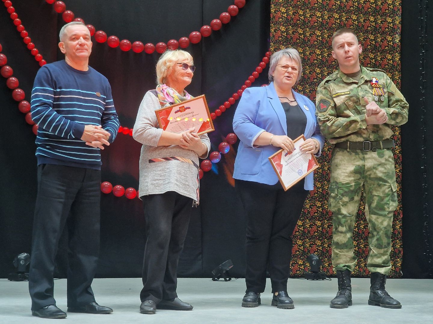 С особой теплотой зрители встречали на сцене детские коллективы — воспитанников ДК. Главным событием вечера стало выступление образцового фольклорного театра «Вечёрка» из Хорлово. Кроме русских народных песен они порадовали зрителей «Подмосковными вечерами» и патриотическим хитом «От Волги до Енисея».