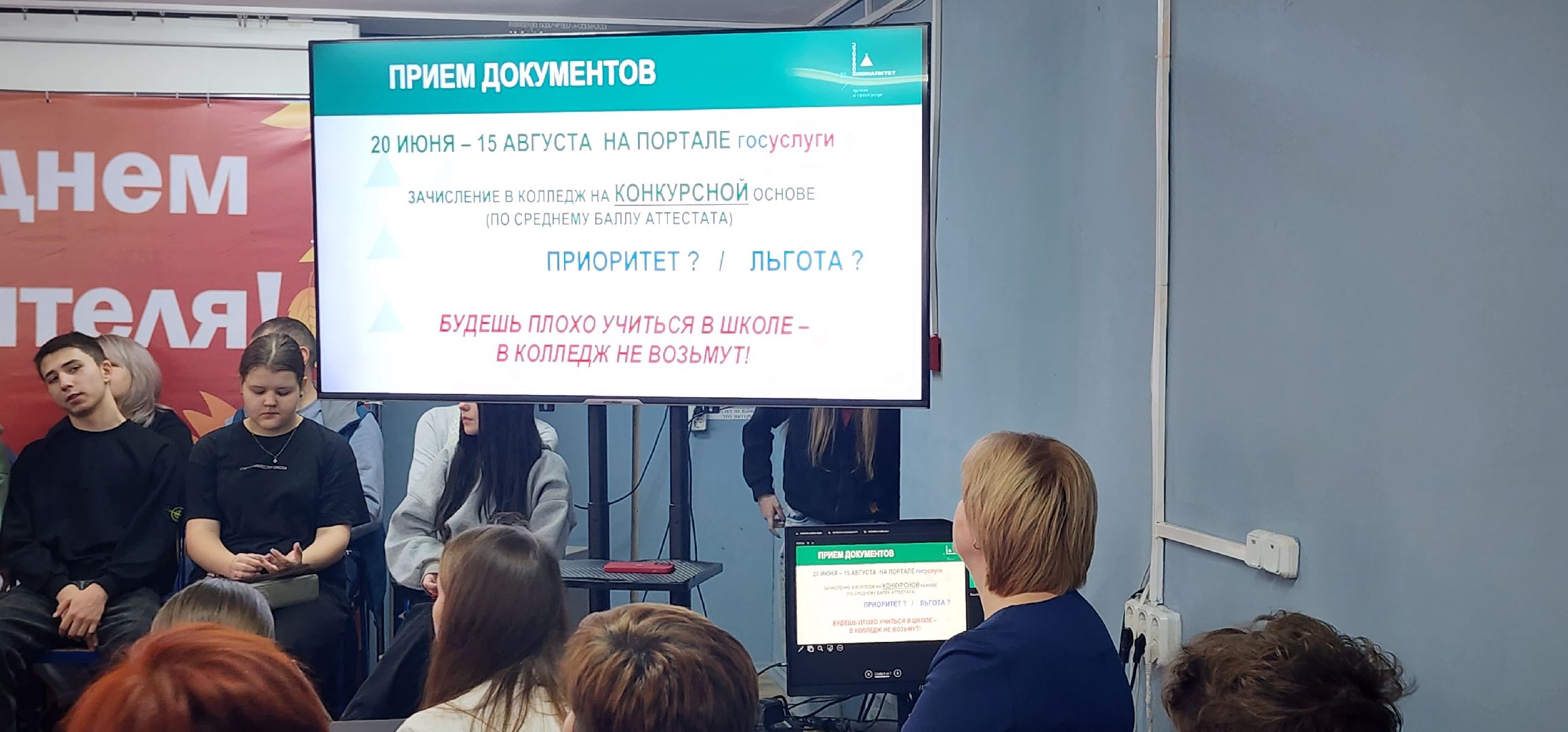 Ребятам показали презентацию, на которой наглядно объяснили, чего ожидать при поступлении в 2026 году. Открыть поступление планируют как на бюджет, так и на платное отделение. Детям предоставят академическую стипендию, учебники и пособия, а мальчики получат отсрочку от армии на срок обучения.