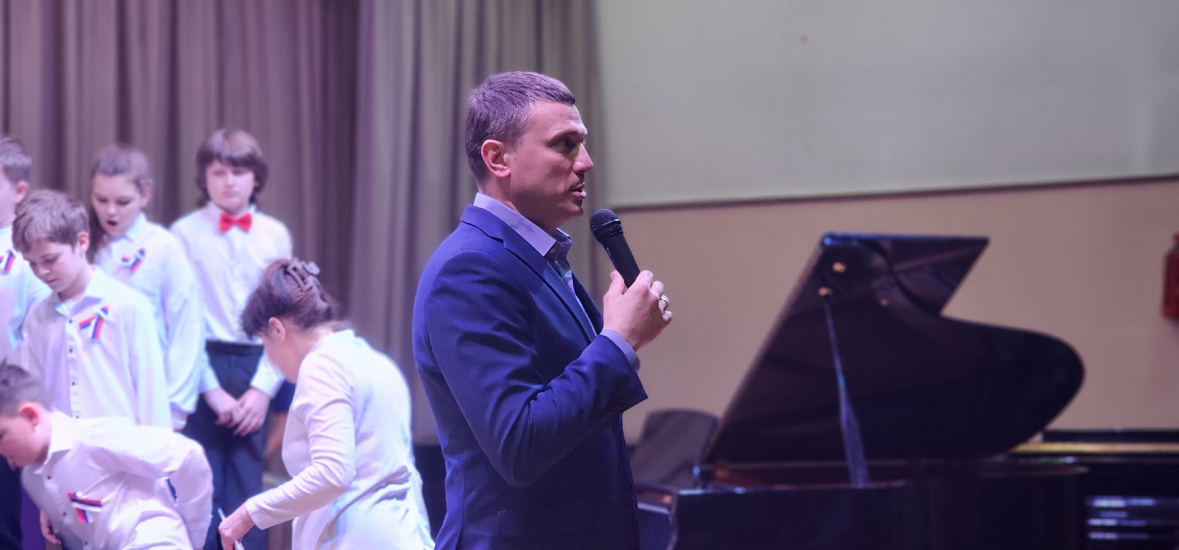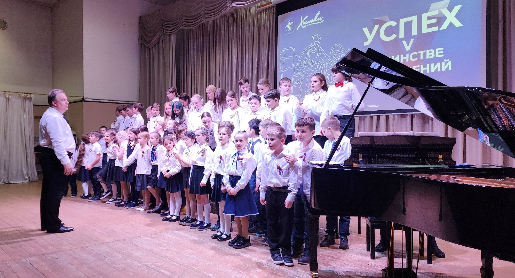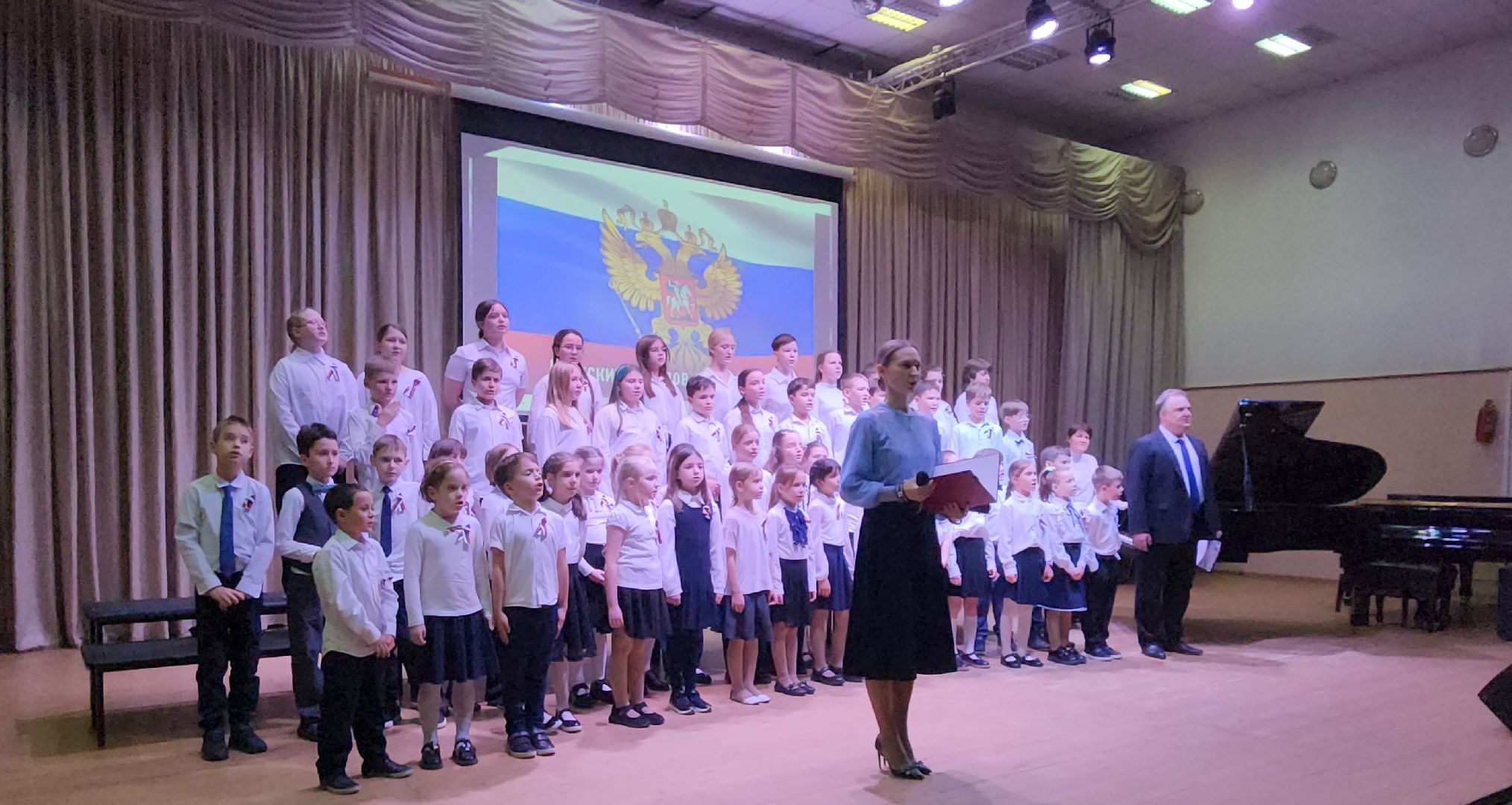 Концерт начался с выступления сводного хора инструментального отдела ДШИ. Воспитанники исполнили песни «Матерям погибших героев» и «Барабан».