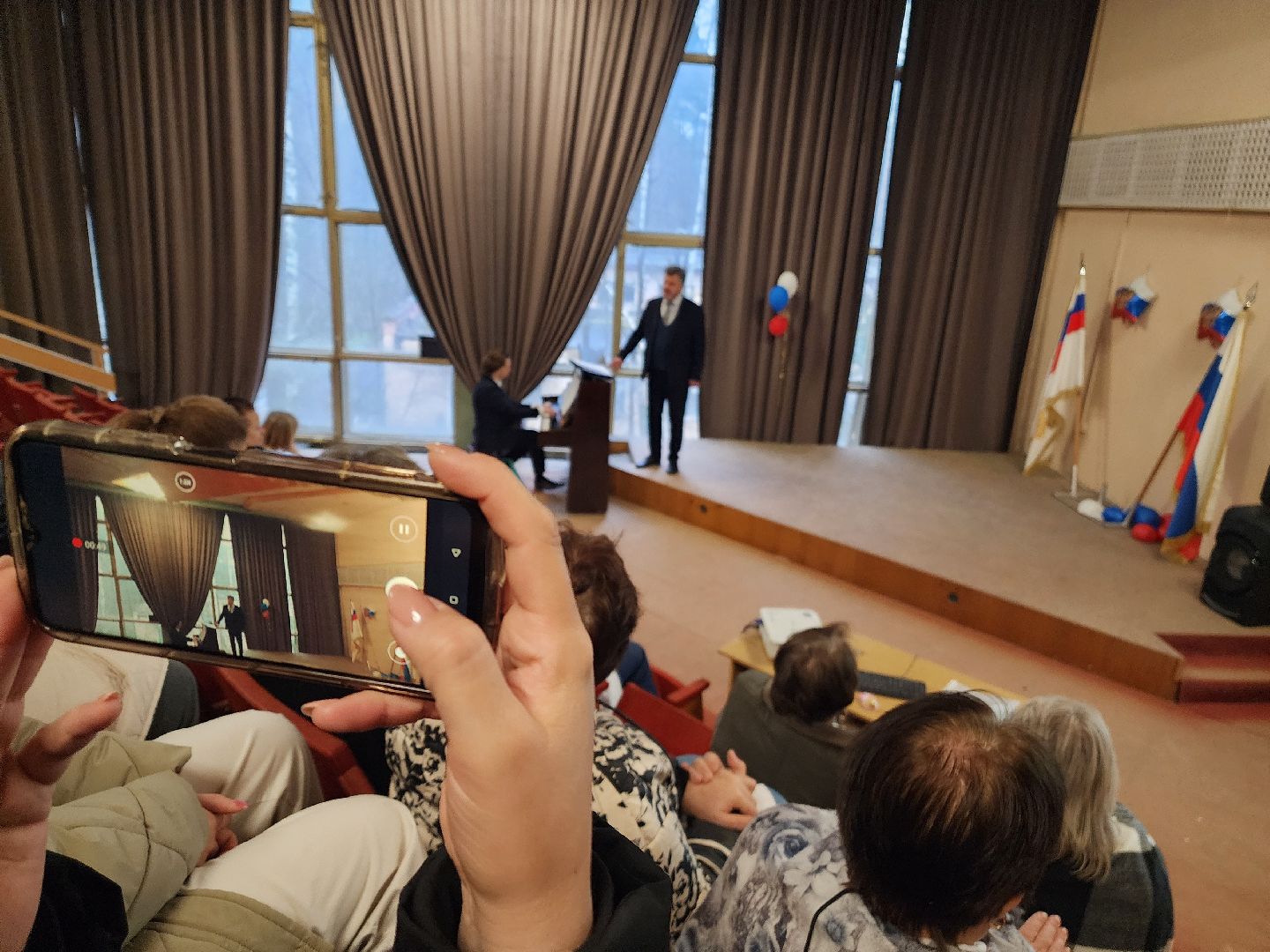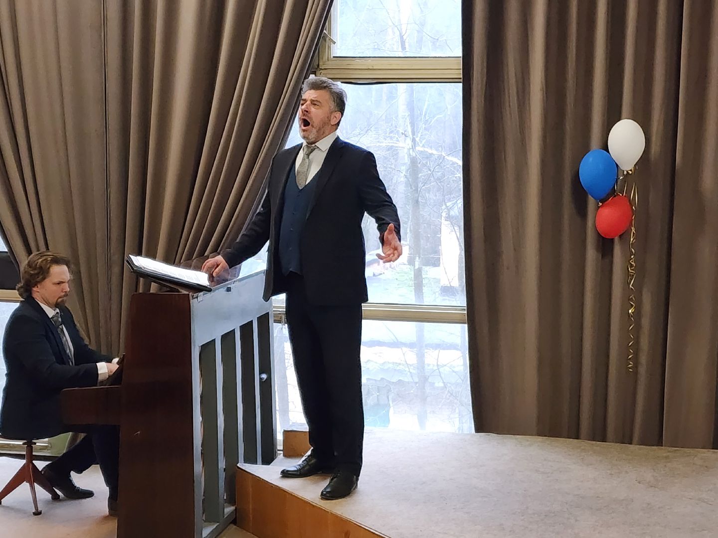 Глубокий бас и эмоциональное исполнение тронули зрителей. Встреча прошла в конференц-зале, который на время превратился в концертную площадку. Аккомпанировал певцу на фортепиано врач-педиатр поликлинической службы, тоже лауреат международных конкурсов, Дмитрий Полянин. Именно его дружба с Сергеем Есиным и помогла организовать эту встречу в медсанчасть №154.