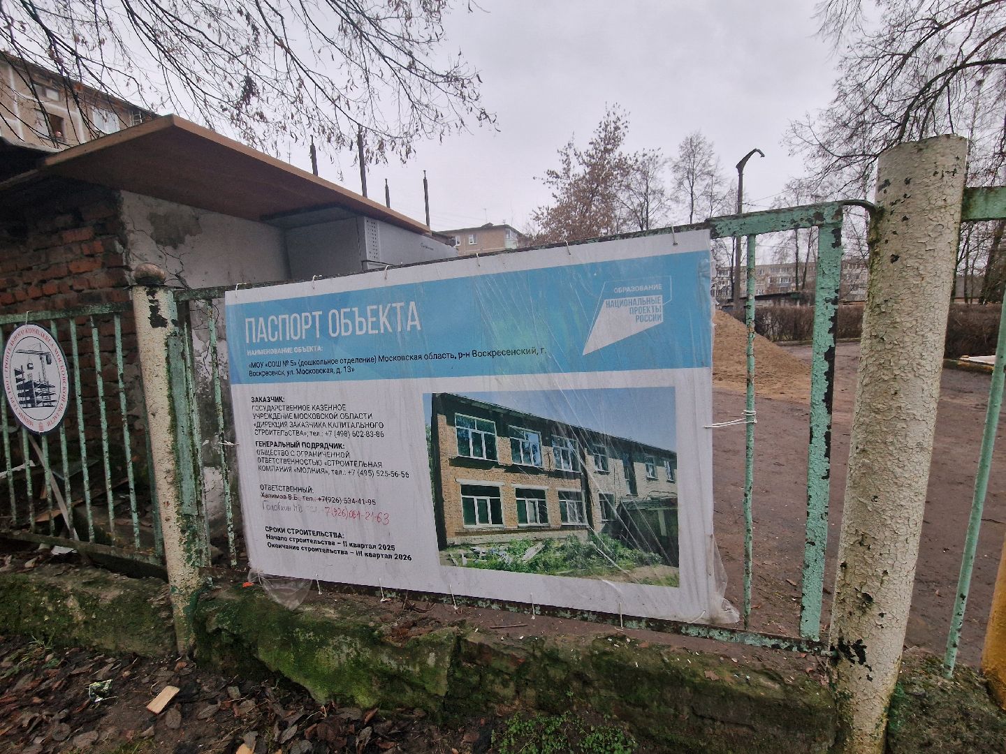 В Воскресенске продолжается капитальный ремонт дошкольного отделения средней школы №5. Работы выполнены на 37%. Площадь здания — почти 2000 кв. м, на объекте трудятся более 20 рабочих.
