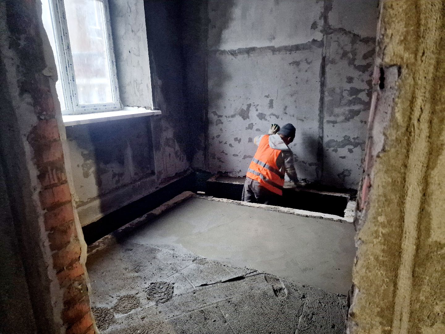 Строители уже закончили кладку кирпичных перегородок и оштукатуривание стен внутри, установили новые окна и почти полностью завершили работы на крыше. Сейчас специалисты заливают выравнивающую стяжку полов, монтируют контур заземления и готовятся к отделке фасада — для этого скоро начнут собирать строительные леса.
