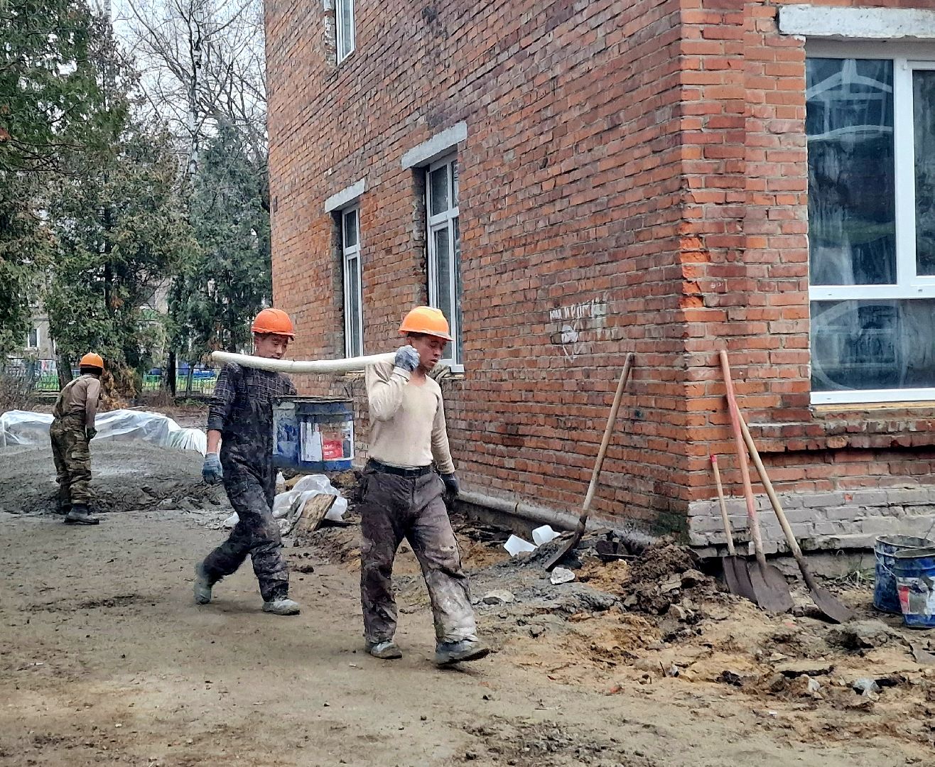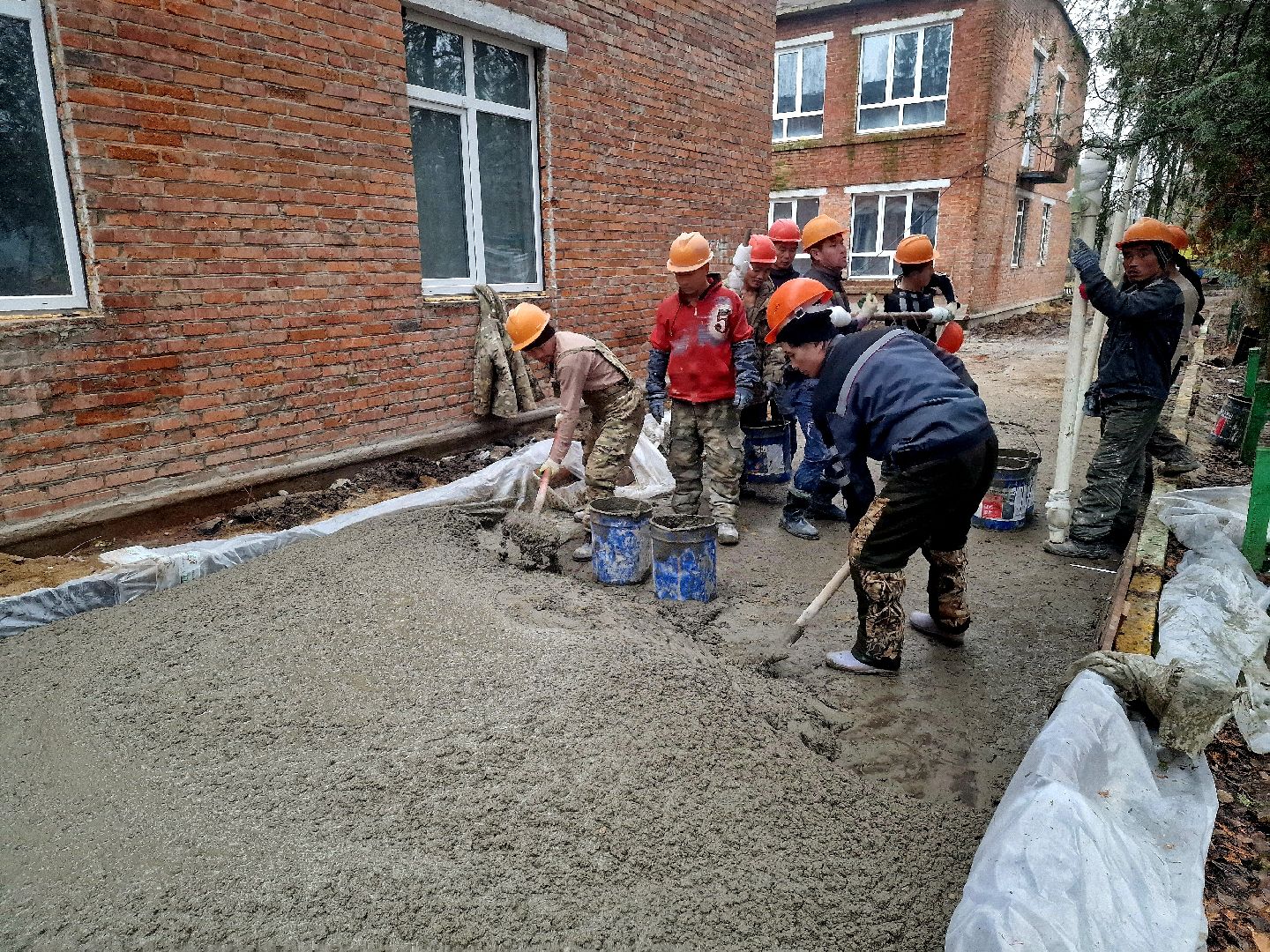 В детском саду на улице Московской в Воскресенке заливают полы и готовят фасад к отделке