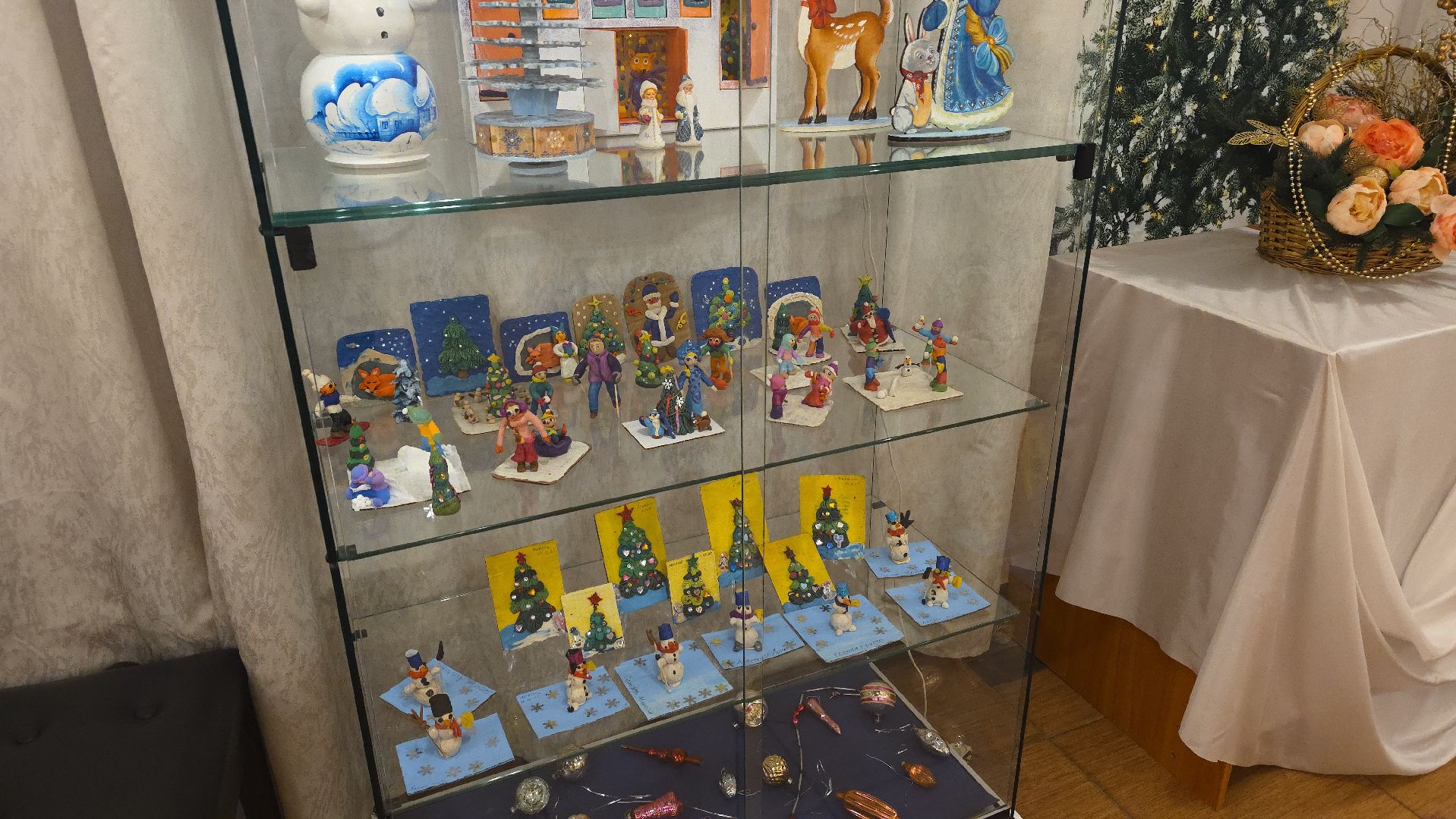 Вероника Савина, руководитель студии декоративно-прикладного творчества «Теремок» и студии изобразительного искусства «Арт-квартал» показывает ёлочку из глины, бережно сделанную с малышами. А еще милые пластилиновые человечки, словно выбежавшие гулять зимним утром. Дети сначала лепили шарики из фольги, потом укутывали их пластилином, чтобы фигурки были устойчивее. И, конечно, целая россыпь рисунков по сказке «Морозко», где фантазии детей не было предела.