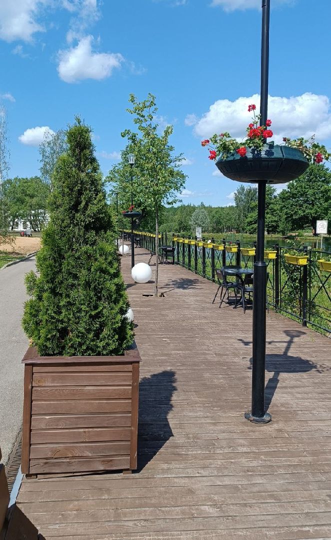 На территории парка, помимо четырехзвездочного отеля, в этом году открылся дом отдыха в лучших традициях СССР «Дом творчества Гостеларадио СССР 3*». Это не случайное название, а дань историческим традициям. Именно здесь располагался дом отдыха, любимый сотрудниками Гостелерадио. Недавно тут прошел ремонт внутренних помещений. Сейчас ведутся внешние работы, уже в июле завершат ремонт навесных балкончиков. С них открывается чудесный вид на четыре каскадных пруда. Все они зарыблены. Так что можно рассчитывать на хороший улов форели, карпа или другой рыбы. Приготовить её можно на открытых зонах барбекю «Sofrino Park».