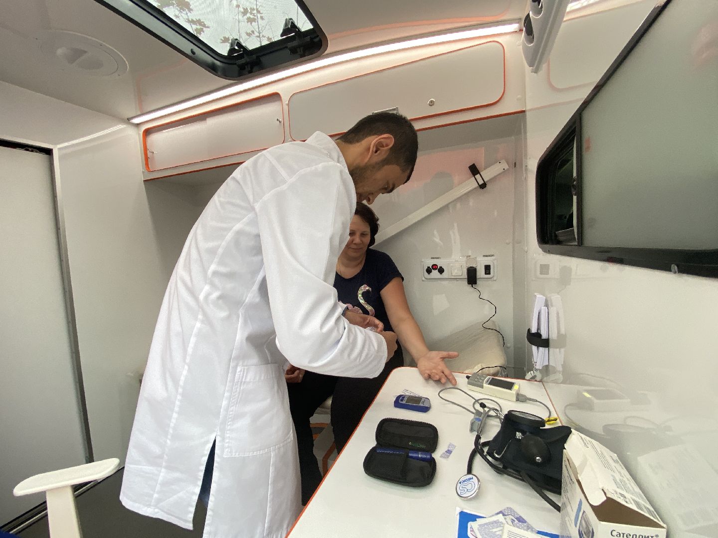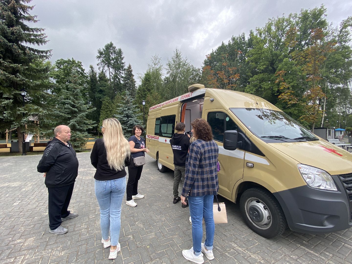 В рамках «Часа здоровья» Истринской больницы прямо в парке все желающие смогли пройти первичное обследование в мобильном фельдшерско-акушерском пункте: например, измерить артериальное давление и узнать уровень сахара в крови.