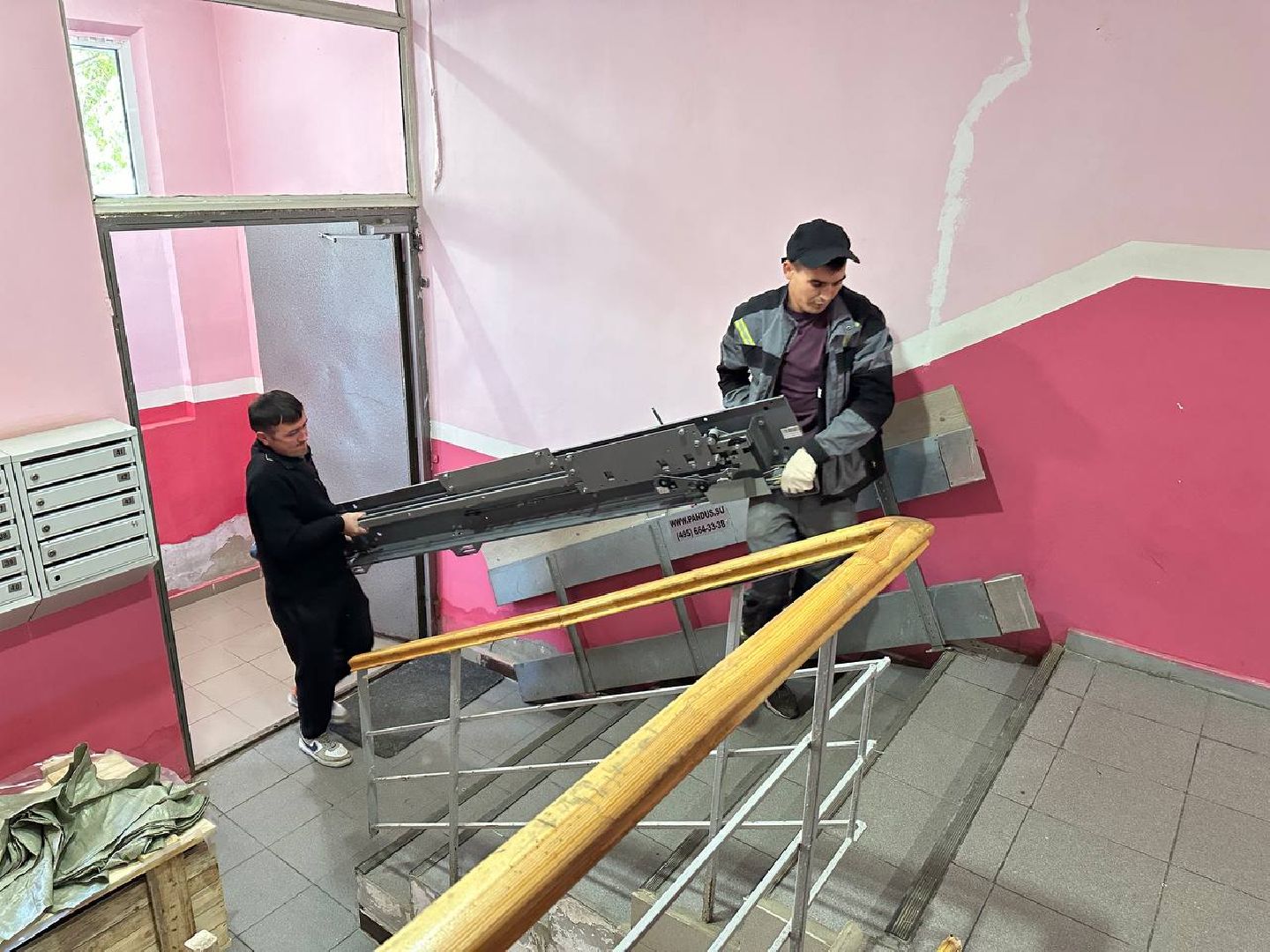 Пока ведутся работы, жителями дома коммунальщики приносят извинения. Немного пошумят, будет пыльно. Но зато уже совсем скоро во всём доме будут установлены новые лифты.