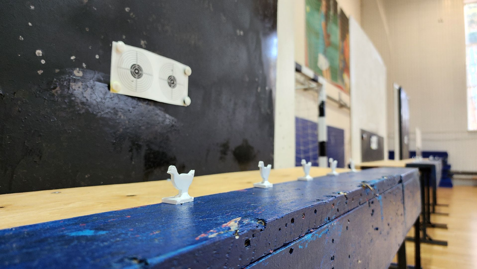 Можно было пользоваться своим оружием. Принимались любые однозарядные пневматические винтовки переломного или рычажного типа калибром 4, 5 мм с дульной энергией до 7, 5 Дж. При этом они должны были быть только с открытым прицельным приспособлением.