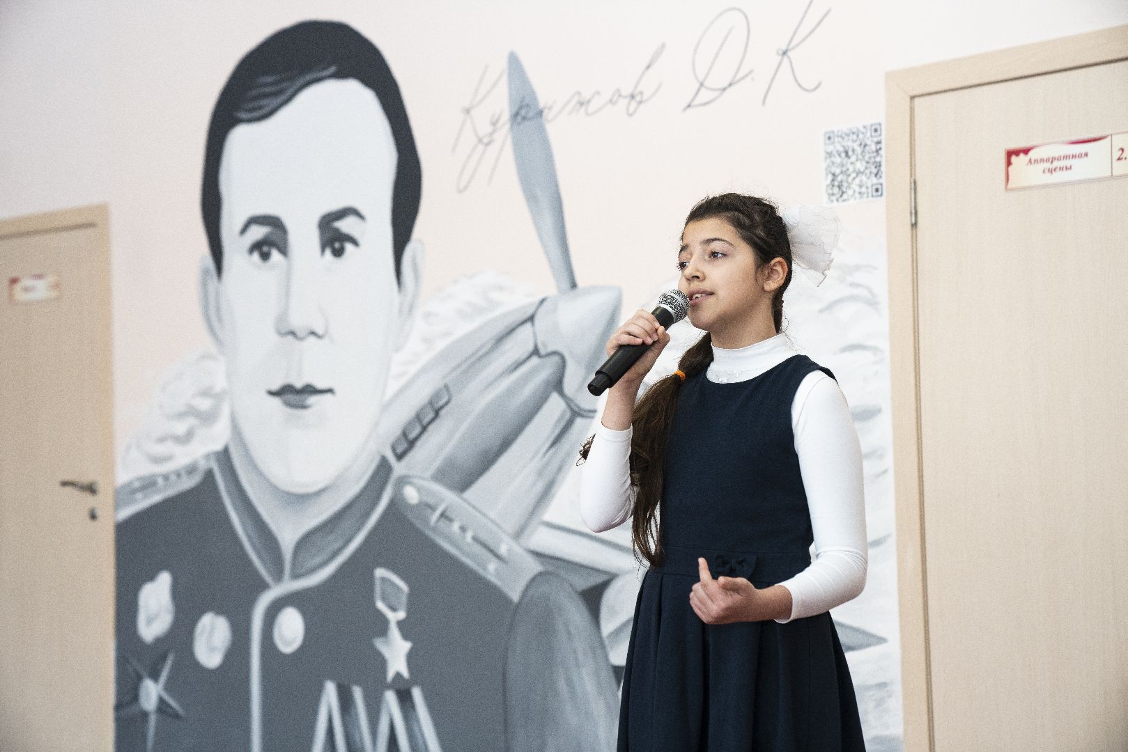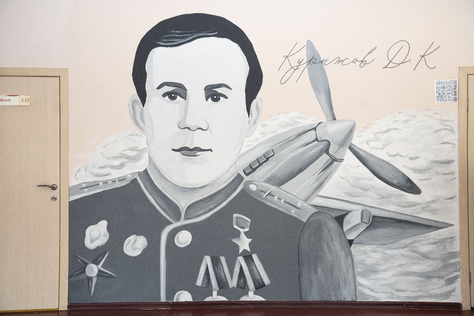 В домодедовской школе во всю стену нарисовали портрет Героя Советского Союза Давыда Курыжова