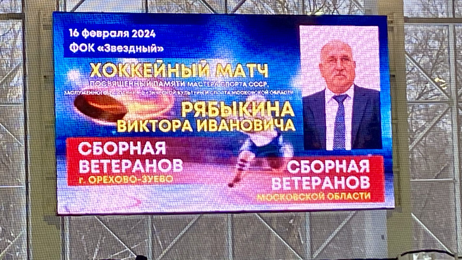 На новом катке в физкультурно-оздоровительном комплексе «Звёздный» прошел хоккейный матч, посвящённый памяти мастера спорта СССР, заслуженного работника физической культуры и спорта Московской области Виктора Рябыкина, который умер 10 января — на 66-м году жизни. В память о нём сегодня встретились сборная ветеранов Орехово-Зуева и сборная ветеранов Московской области, за которую играли хоккеисты из разных городов региона — из Ногинска и Электрогорска, Шатуры и и Павловского Посада.