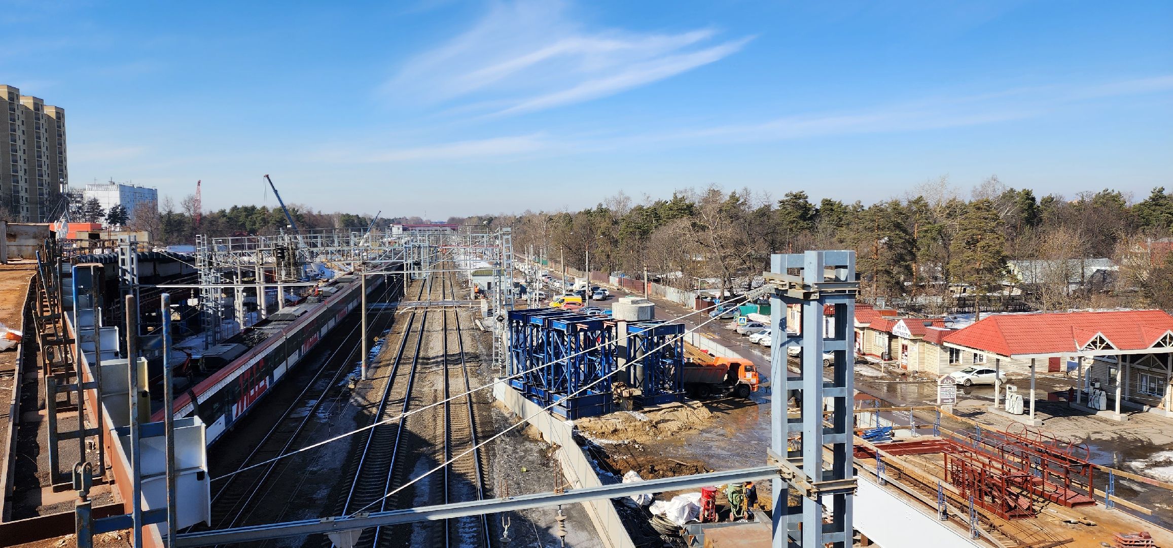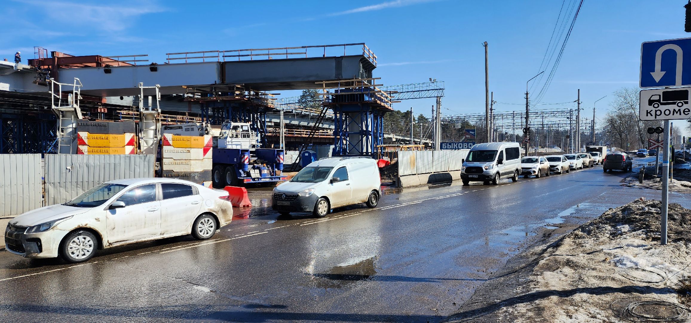 На площадке строительства путепровода «Быково» в Раменском округе установили боковую секцию ригеля шестой опоры над железной дорогой