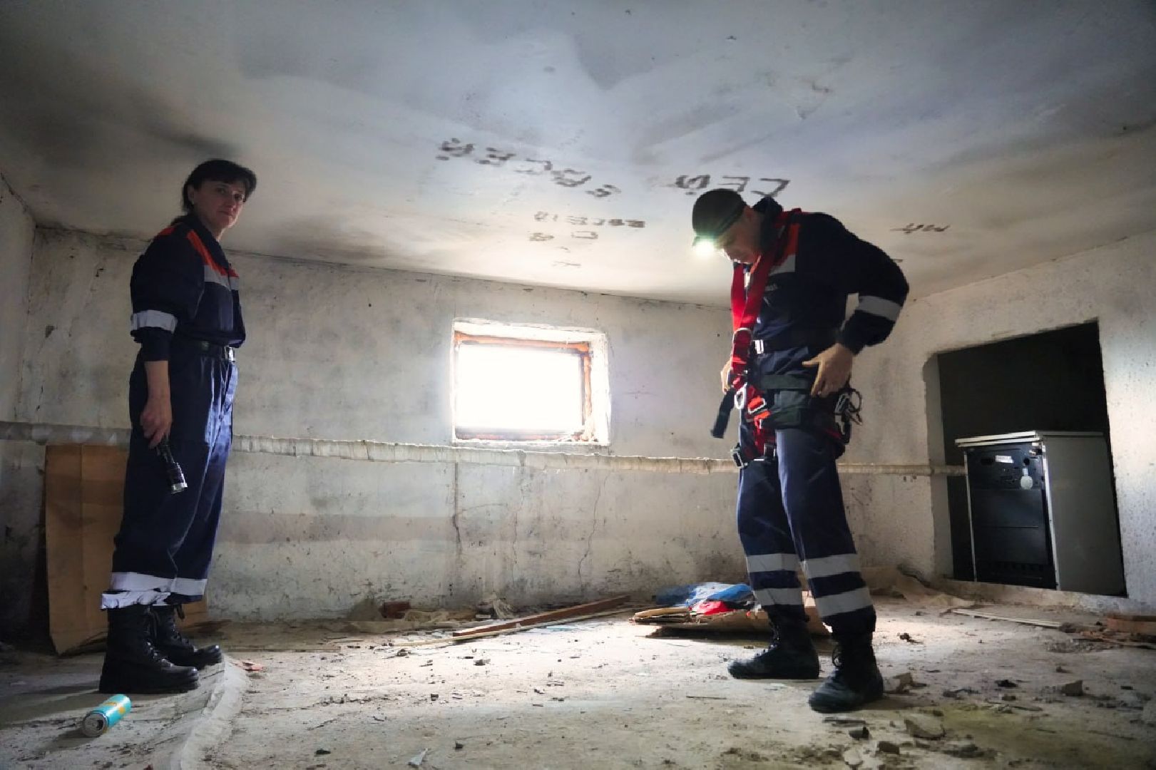 С разрешения владельцев квартиры спасатели проделали отверстие в стене ванной комнаты, чтобы освободить путь на волю попавшей в бетонный плен кошке. Но от пугающих звуков перфоратора животное залезло по вентиляционной шахте выше – на уровень второго этажа.