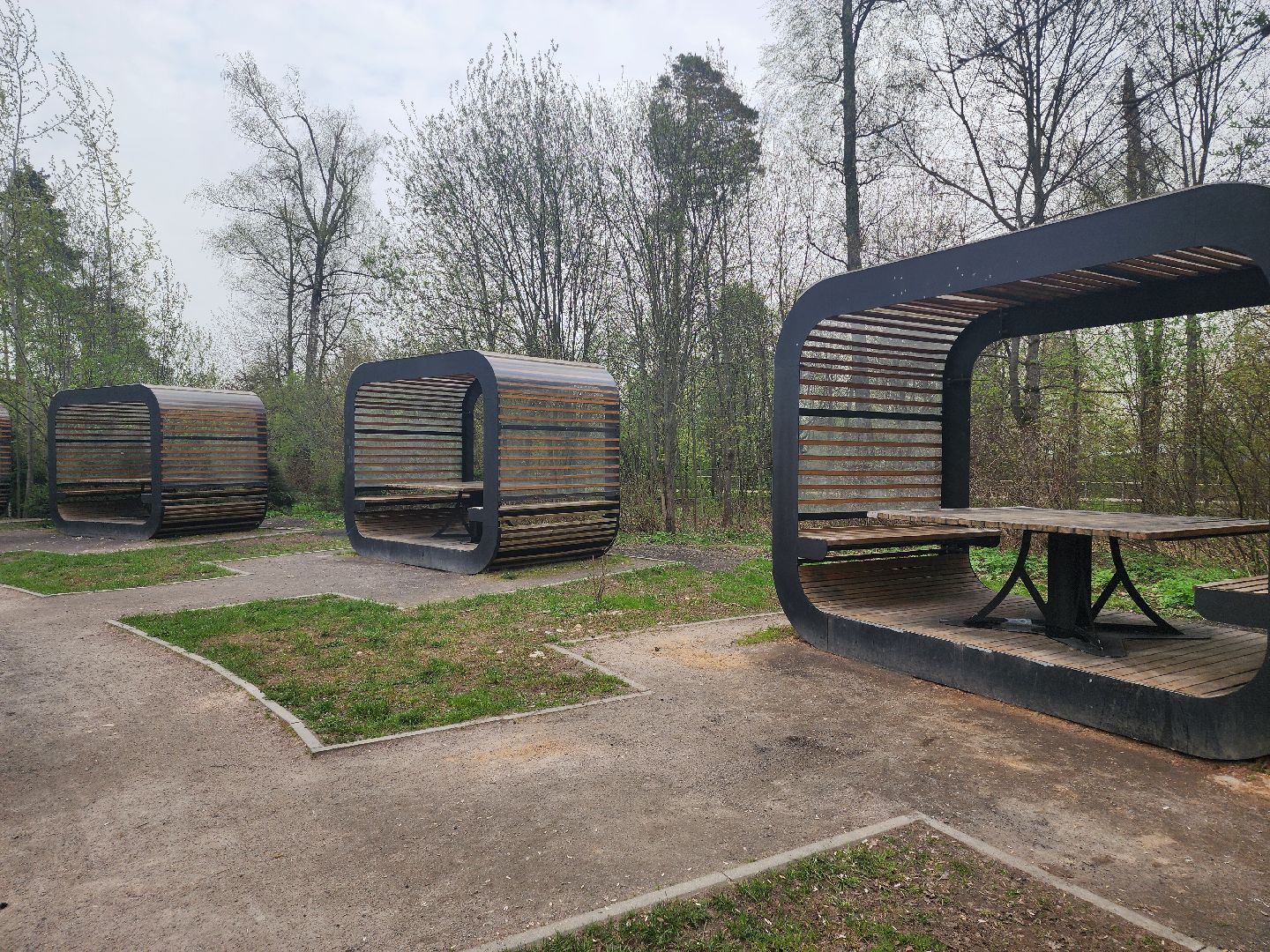 В лесопарке предусмотрено несколько специально оборудованных мест для приготовления шашлыков: беседки укрывают от дождя и солнца, а рядом с ними установлены контейнеры для сбора мусора.