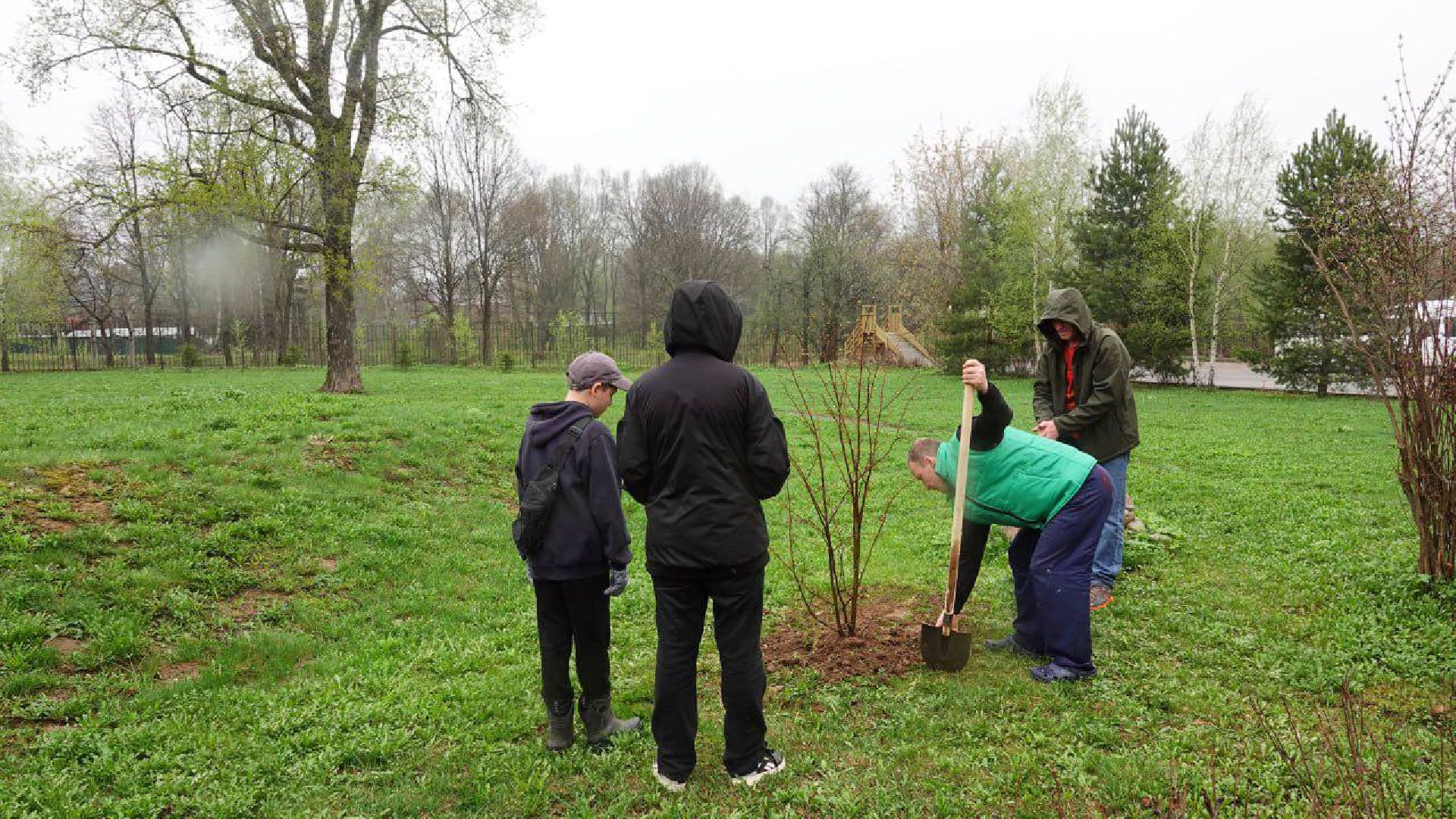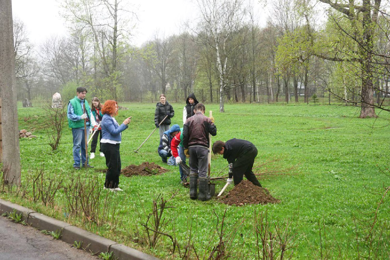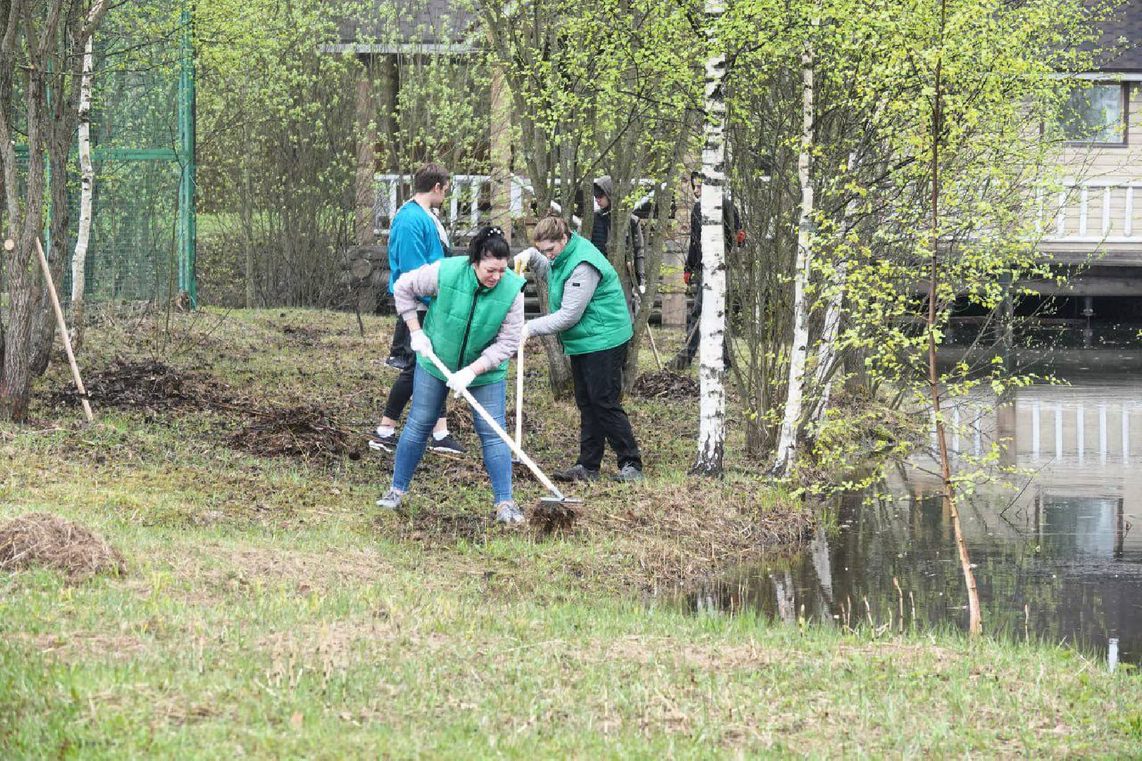 В озеленении парковой территории приняли участие учащиеся школы №14 и сотрудники Сергиево-Посадского драматического театра «Театральный ковчег в Дубраве».