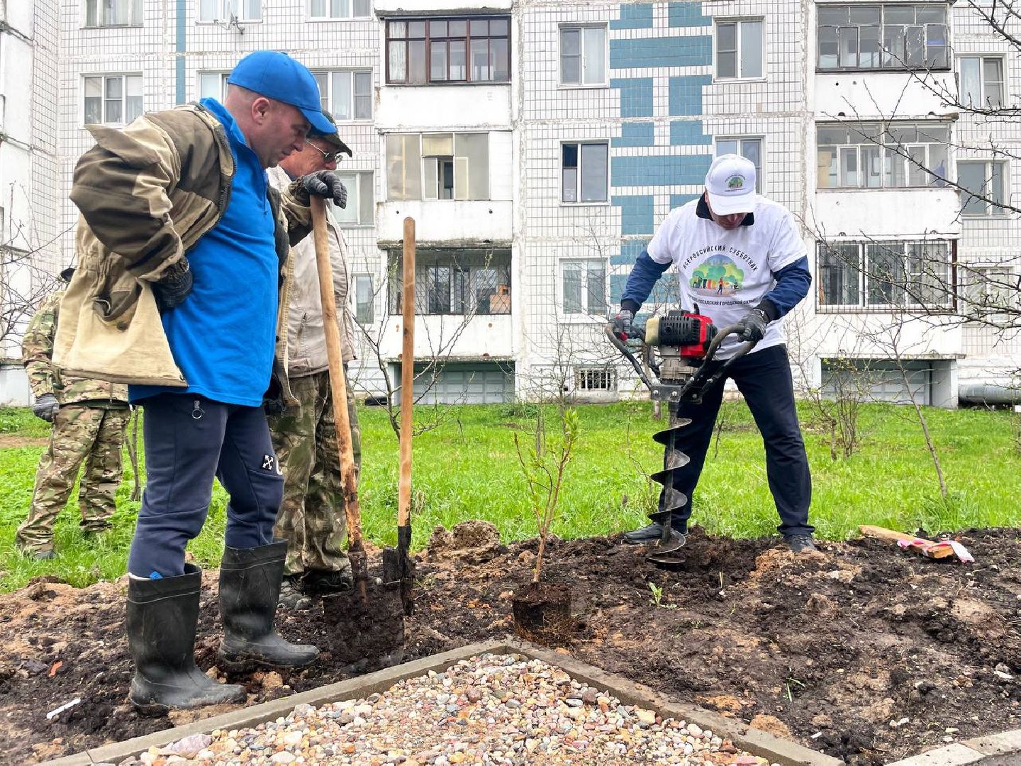 В общей сложности было посажено около 75 деревьев и кустарников.