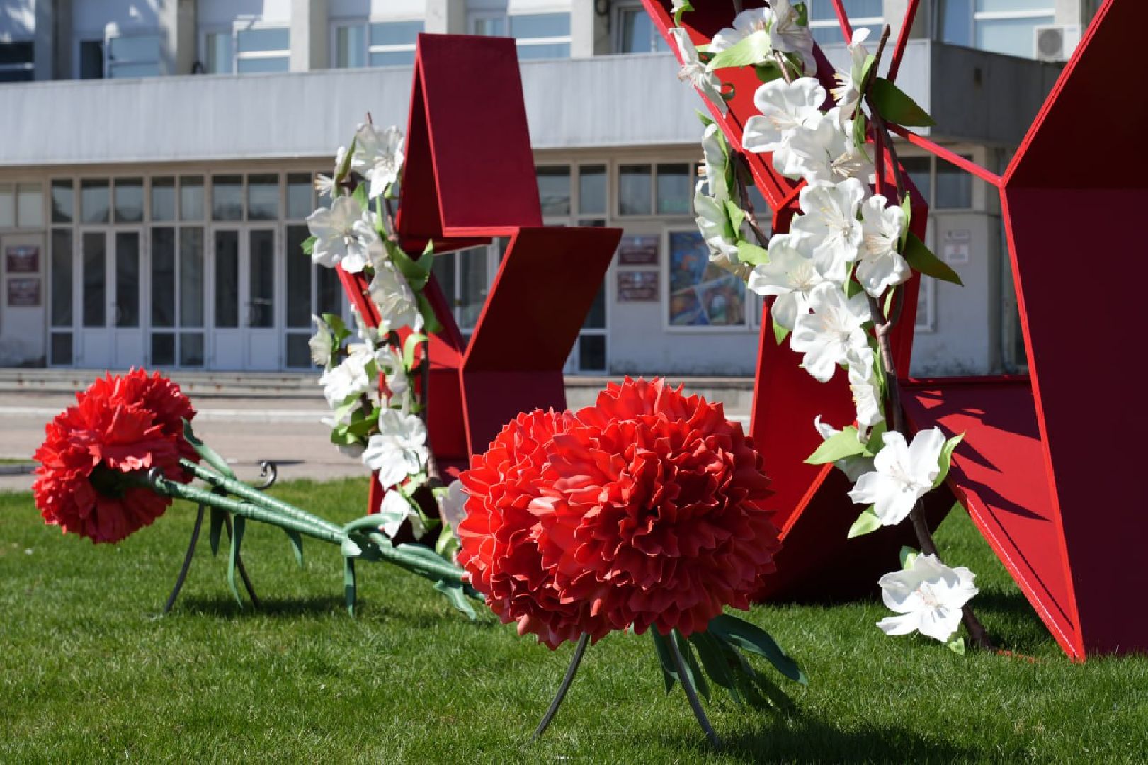 Малые архитектурные формы в виде красных звёзд, гвоздик и голубей также появились у мемориального комплекса «Вечный огонь».