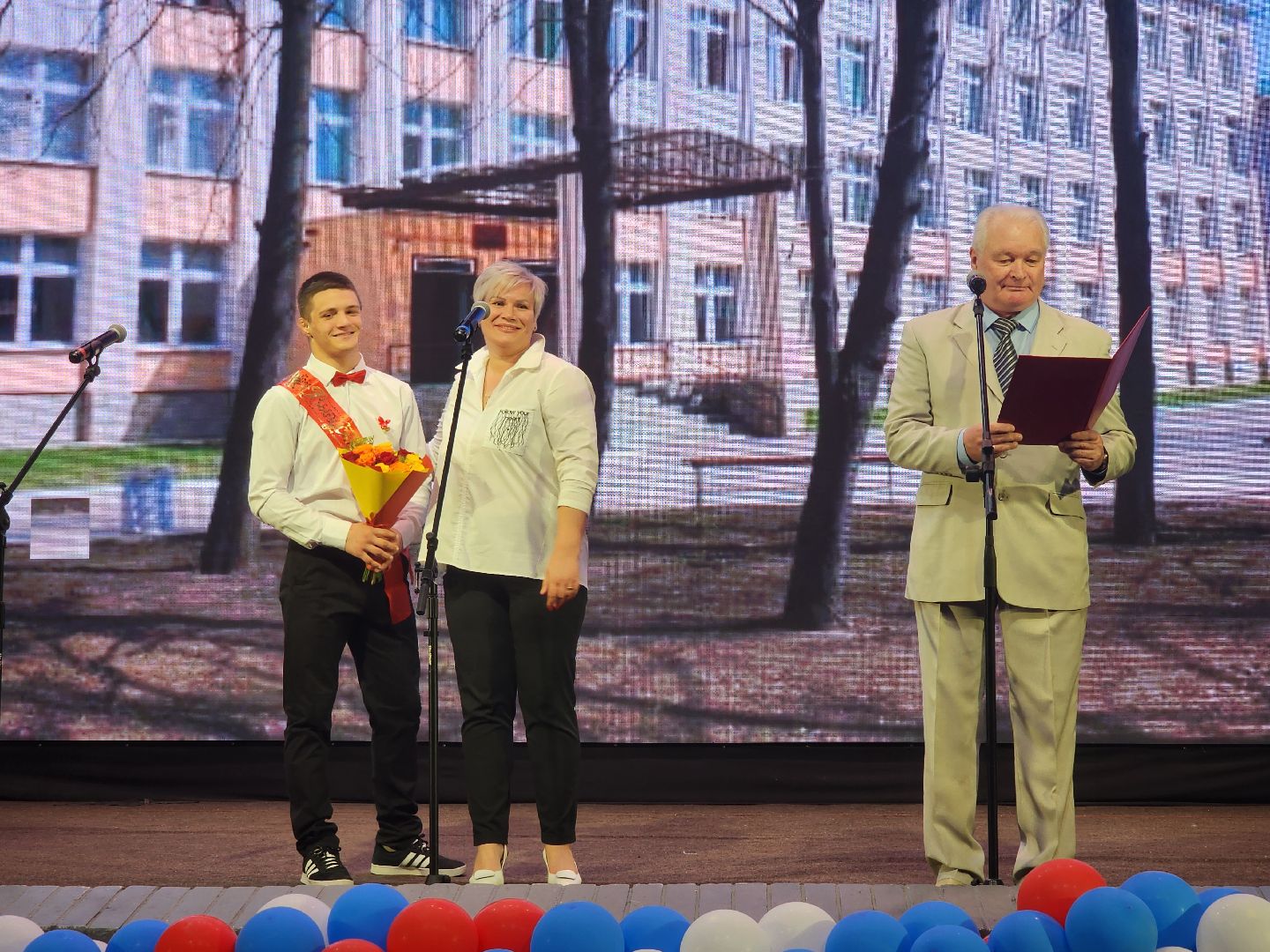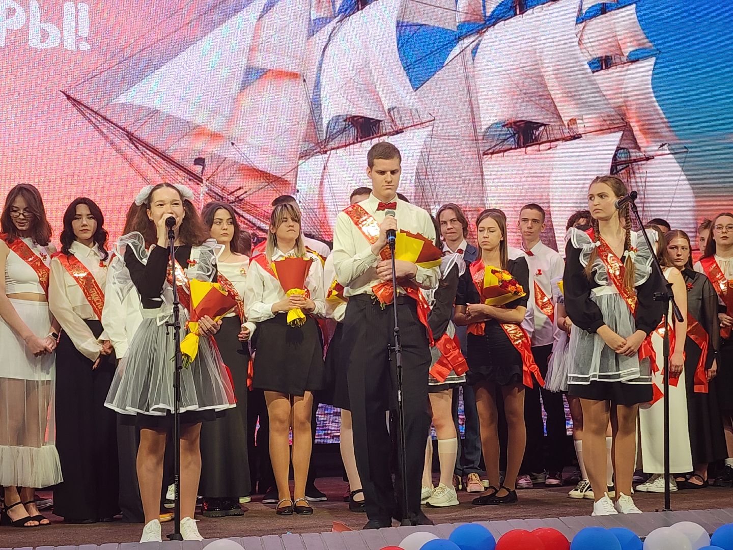 Напутствия от учителей и руководства школы сменились трогательными речами родителей, с трудом осознающих, что их «птенцы», ещё недавно с трудом надевающие большой школьный ранец, вот-вот выпорхнут не только из школьных пенат, но и из родного дома. Во всяком случае призыв выбирать отличные вузы и искать свой путь в жизни звучал от всех взрослых на сцене. Много добрых улыбок и смеха вызвал видеоролик, подготовленный родителями выпускников, снятый в стиле 1980-90-х годов.