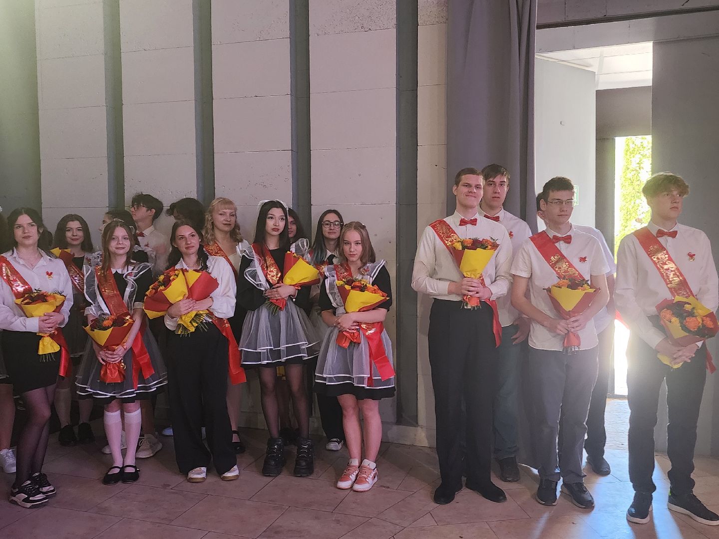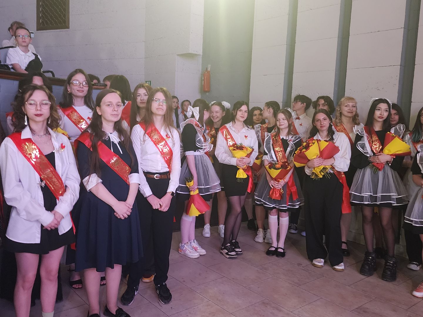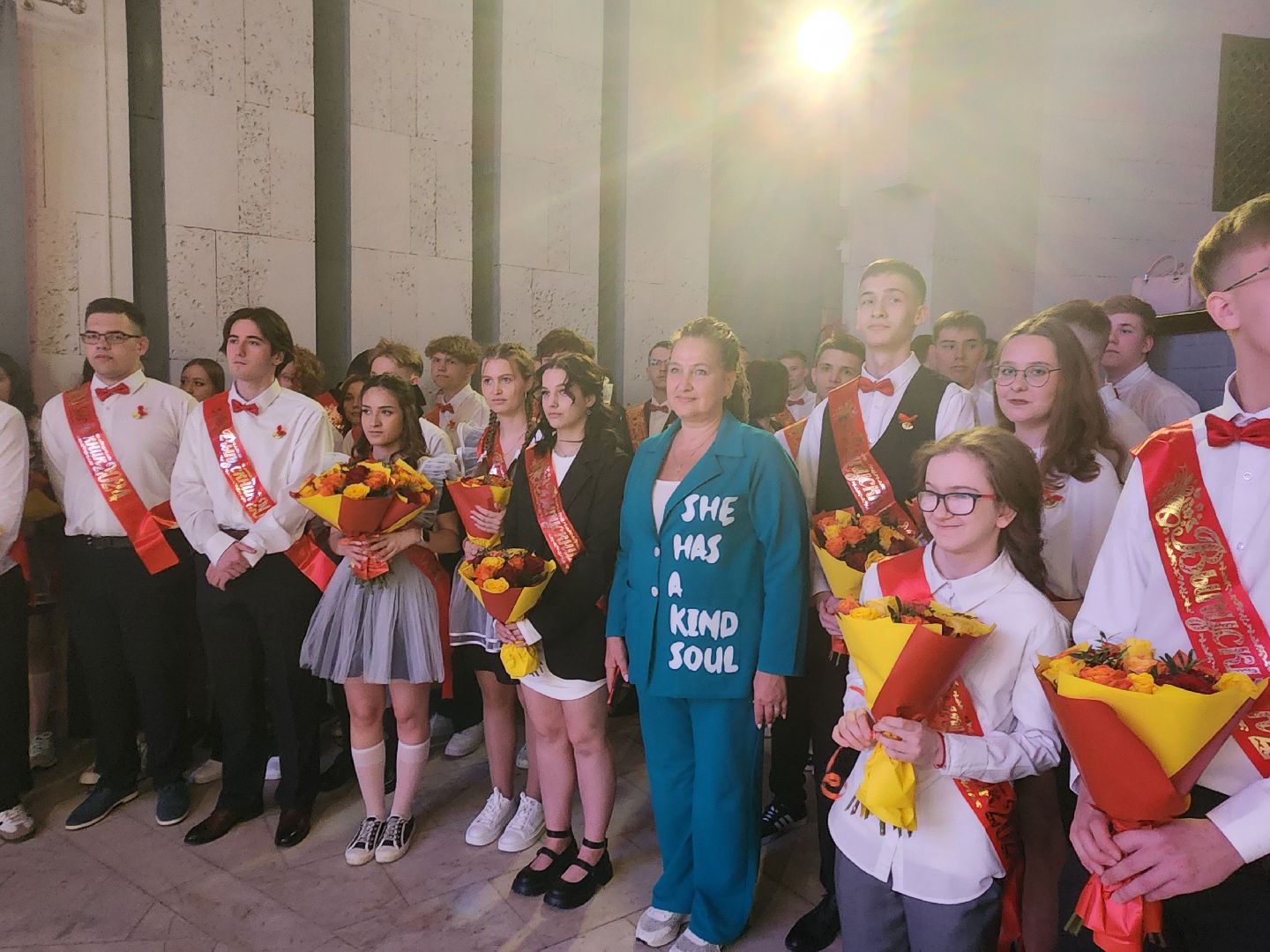 Ученики 11 Б класса говорят, что настроение у них отличное: всё же событие знаменательное. Варвара признаётся, что школа дала ей друзей, это самое главное.