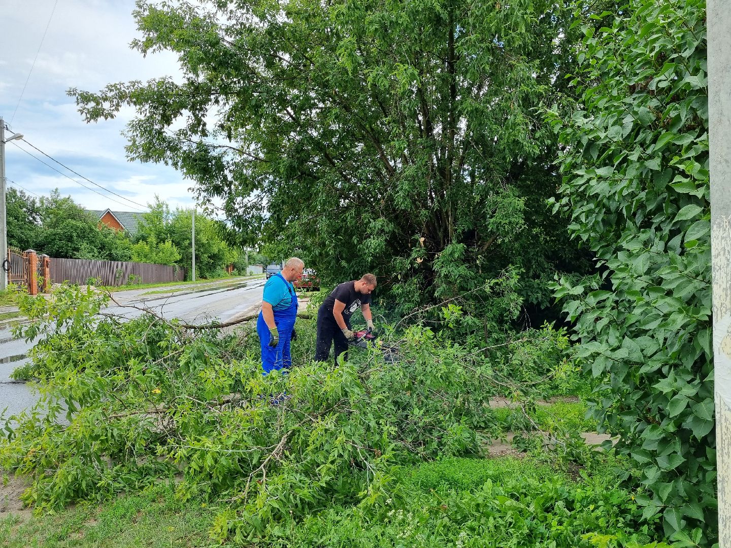 В ходе встречи жительница посёлка пожаловалась на то, что на проводах около её дома буквально лежит дерево, которое может оборвать провода в любой момент и оставить весь посёлок без электричества. Данный вопрос требовал незамедлительного решения. Администрация выполнила все работы максимально оперативно.